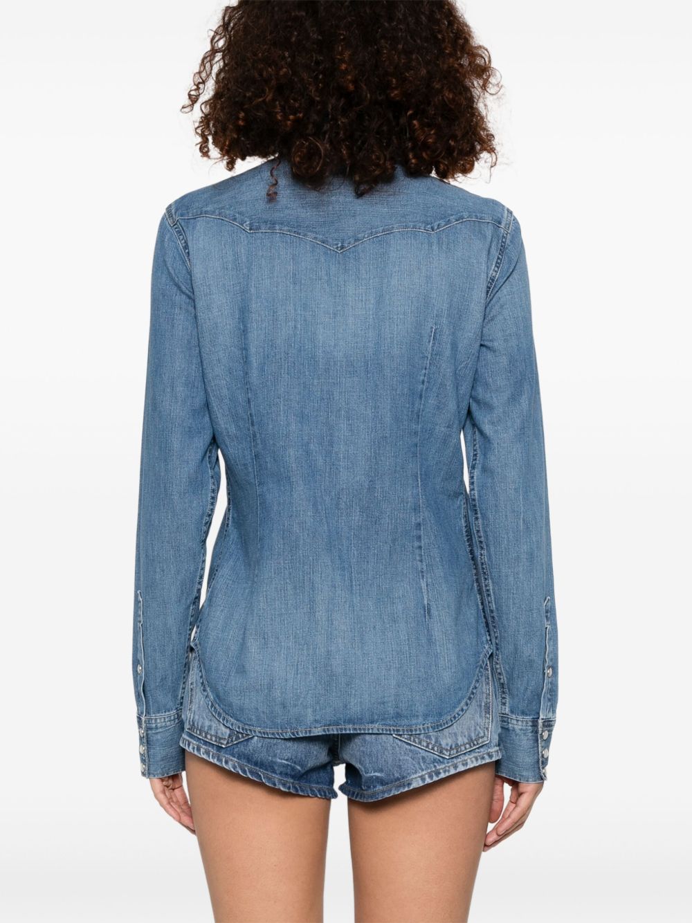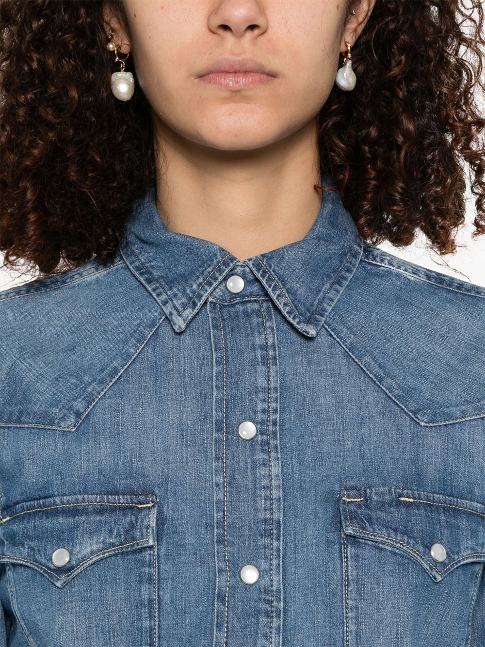 Camicia denim azzurra, bottoni a pressione ricoperti in madreperla , modello western maniche lunghe