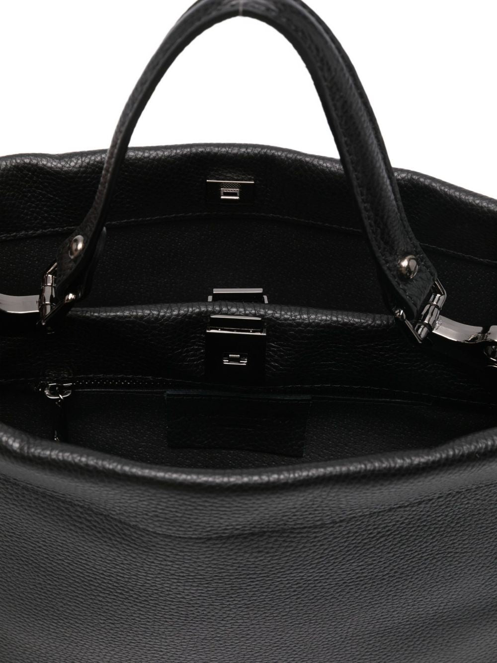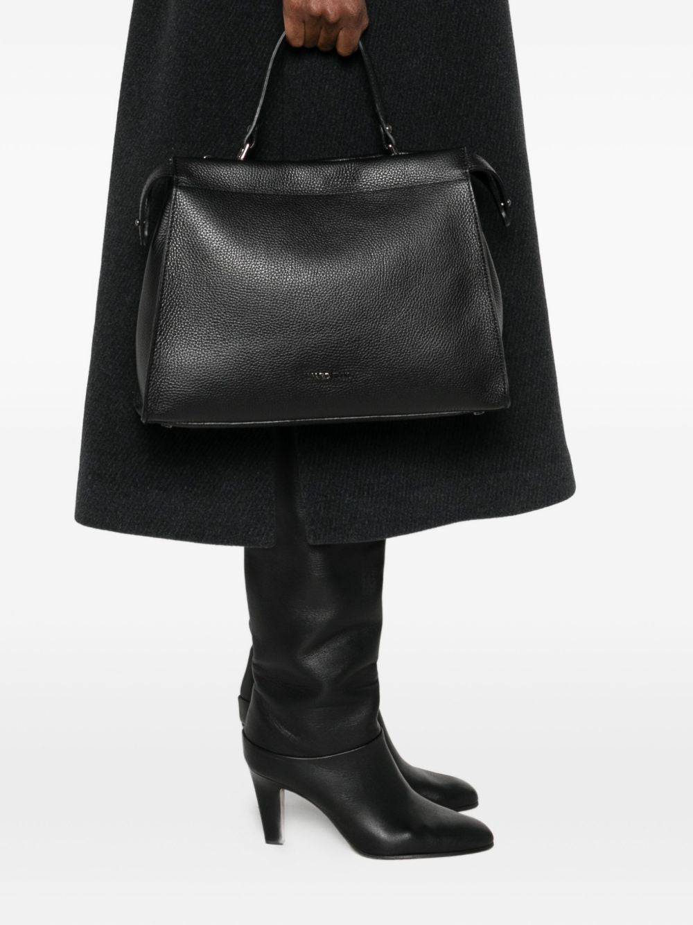 Manico superiore nero, tracolla removibile, logo lettering, chiusura con zip, tasca interna a bustina