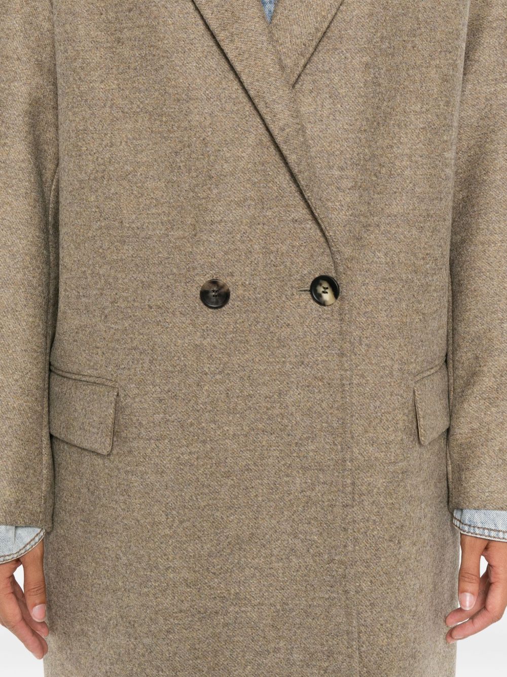 Cappotto color kaki chiaro, chiusura doppiopetto, tasche con patta, maniche lunghe, lana, orlo dritto | Isabel Marant