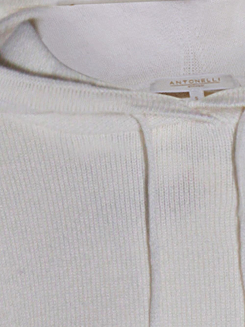 Maglione bianco con cappuccio, tasca a marsupio, maniche lunghe e orlo a coste | Antonelli Firenze