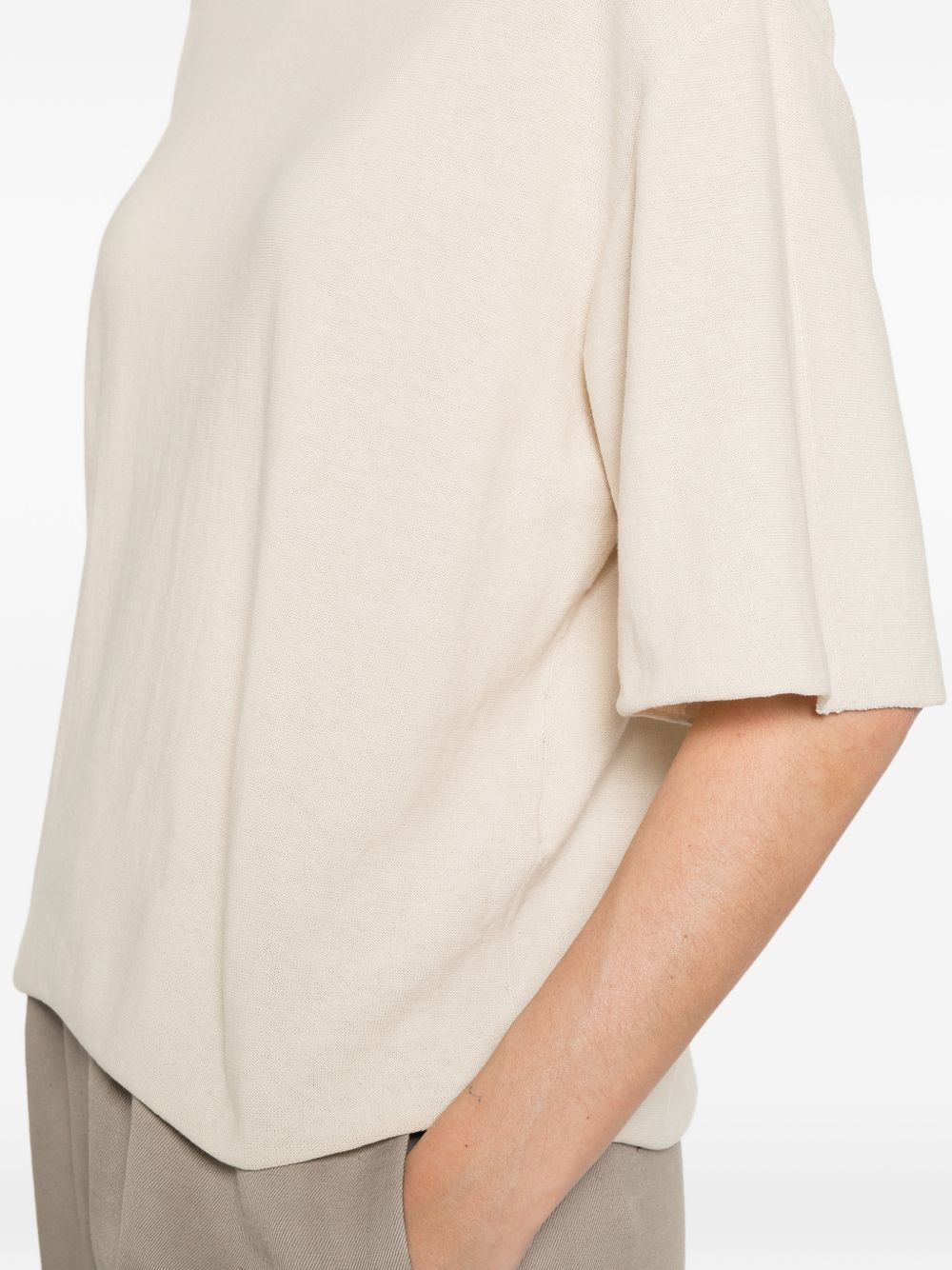 Elegante maglietta girocollo a mezza manica "Angelica" in 100% cotone, realizzata in Italia. Perfetta per la stagione Primavera Estate 2026, in un raffinato colore bianco..