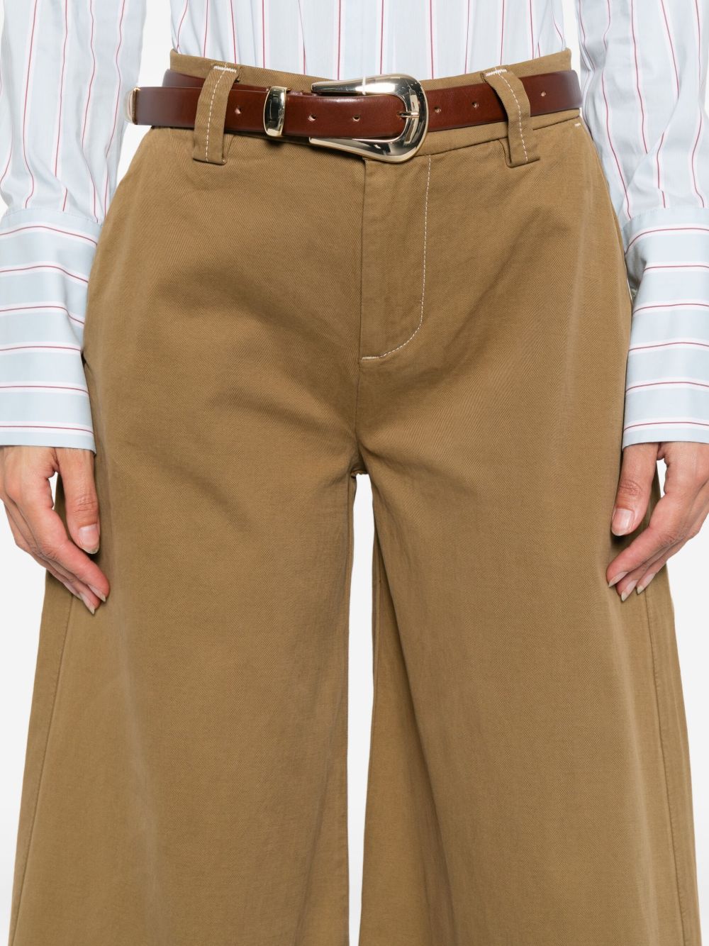 Pantaloni in denim di cotone, tasche anteriori a vita alta color beige sabbia, patta con bottoni e impunture | 7 For All Man Kind