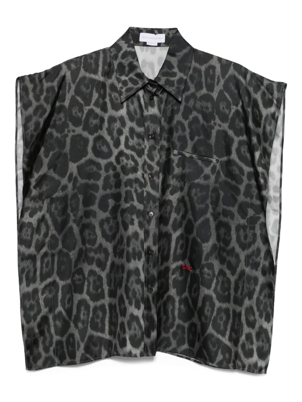 Camicia senza maniche grigia con stampa leopardata e chiusura a bottoni | Stella McCartney
