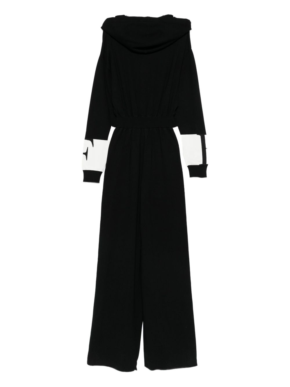 Abito / Tuta colore nero con cappuccio, scollo a V, chiusura con zip, maniche lunghe, strisce laterali | Elisabetta Franchi