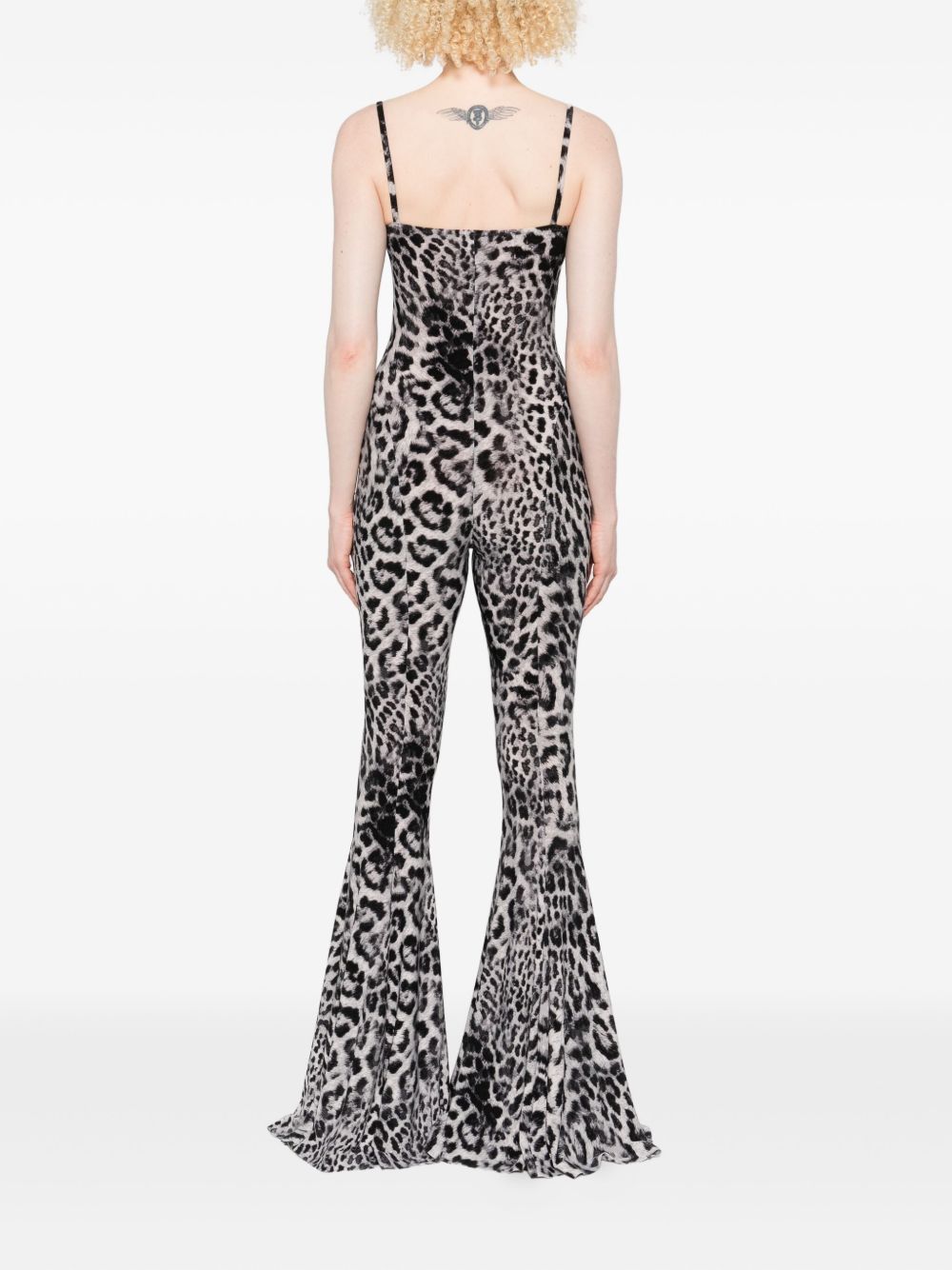 Tuta leopardata nera e grigia con scollo a V e spalline regolabili | Norma Kamali