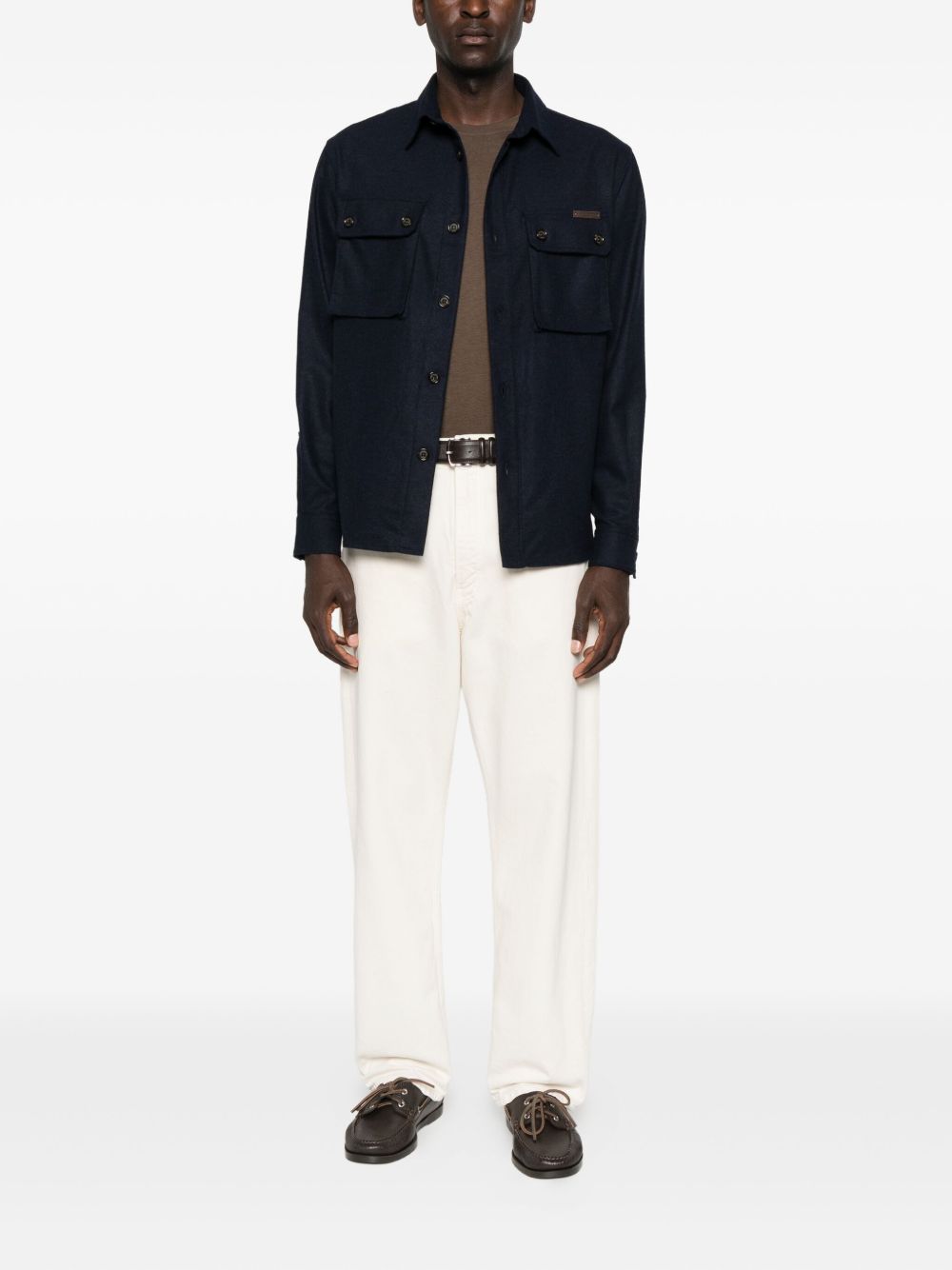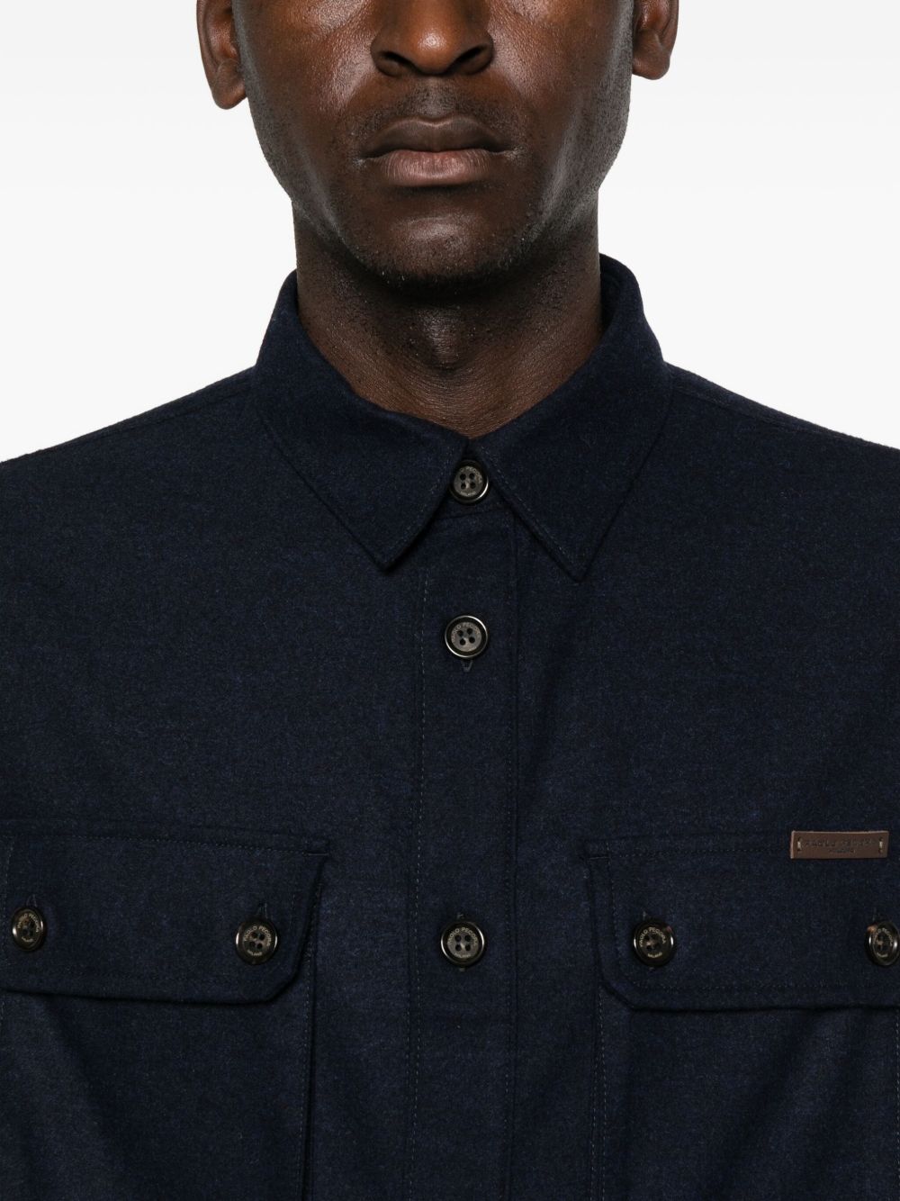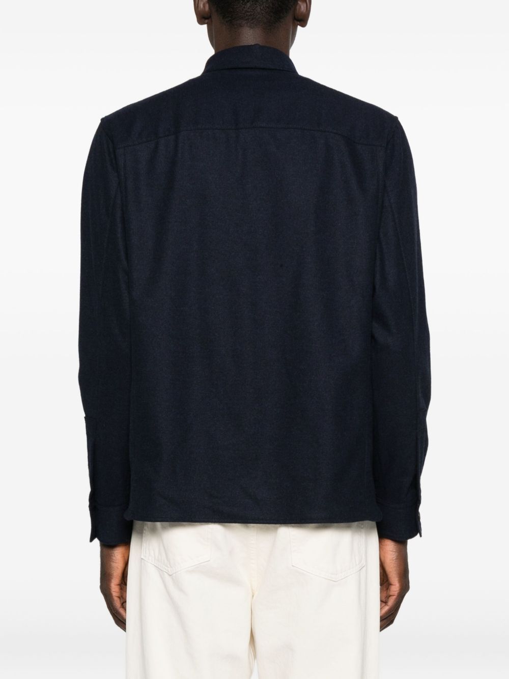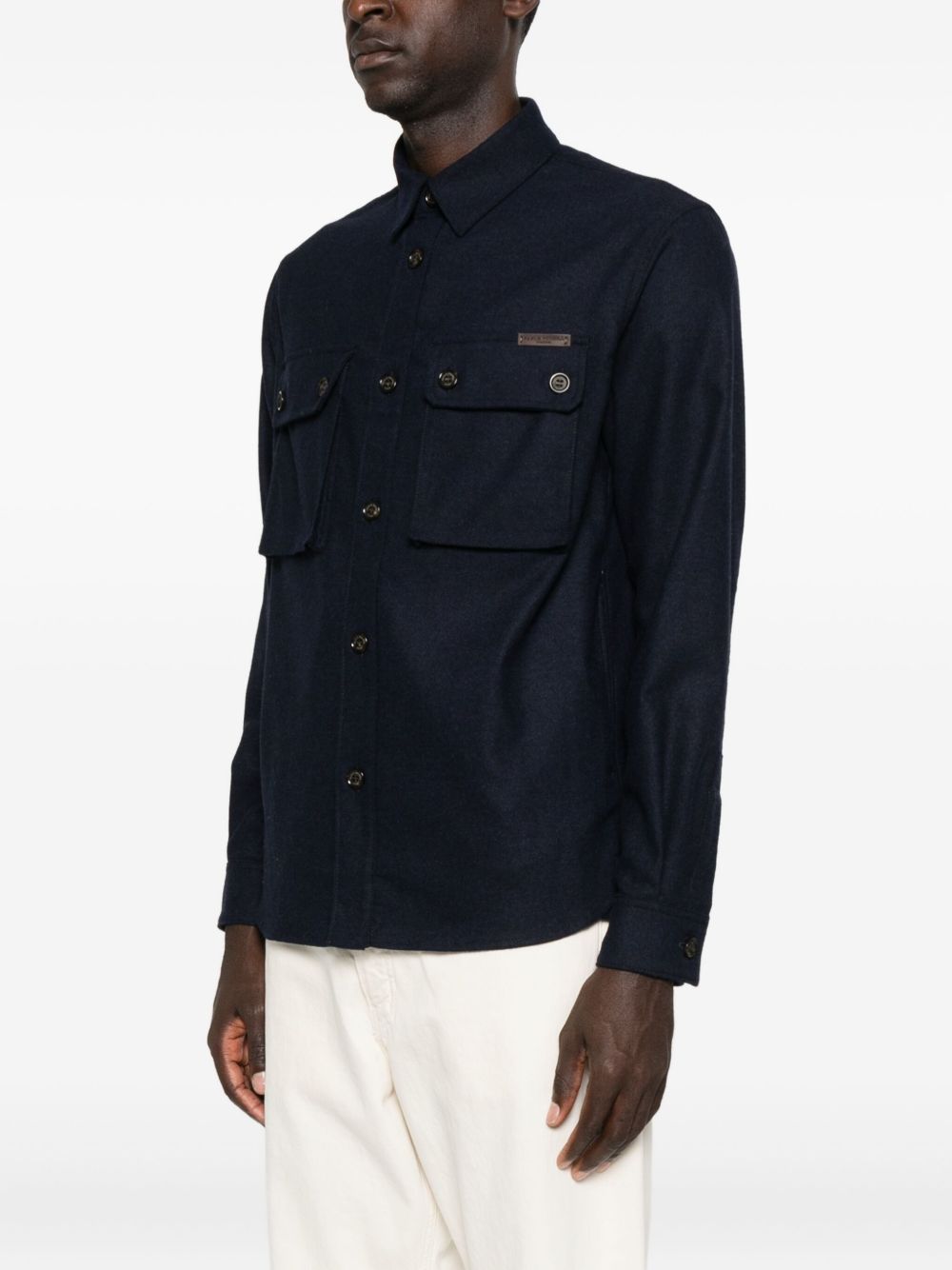 Camicia blu navy, maniche lunghe, chiusura con bottoni, due tasche con patta, collo con colletto, orlo dritto | Paolo Pecora