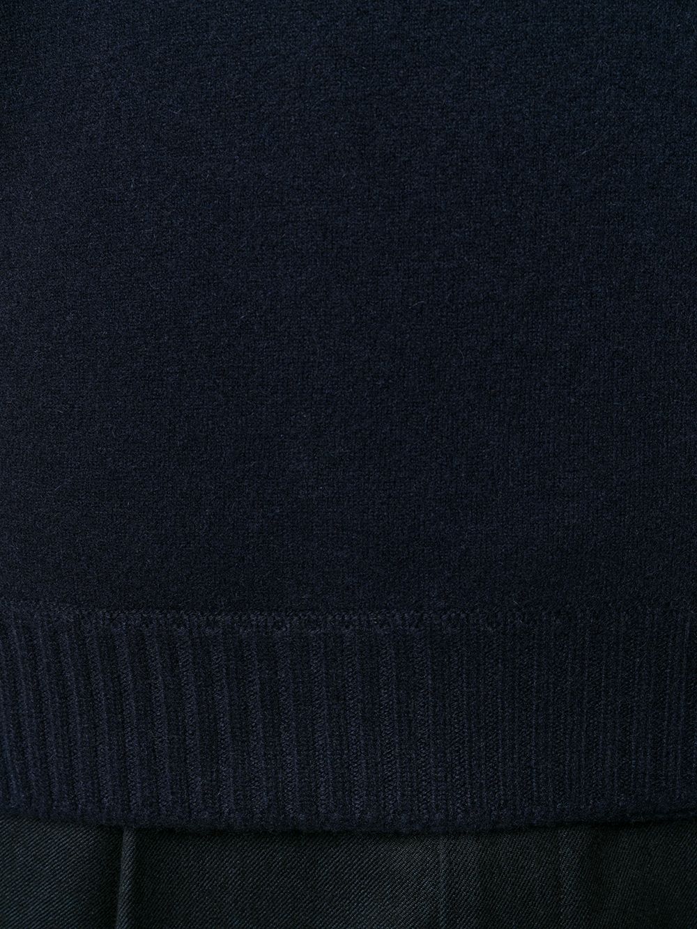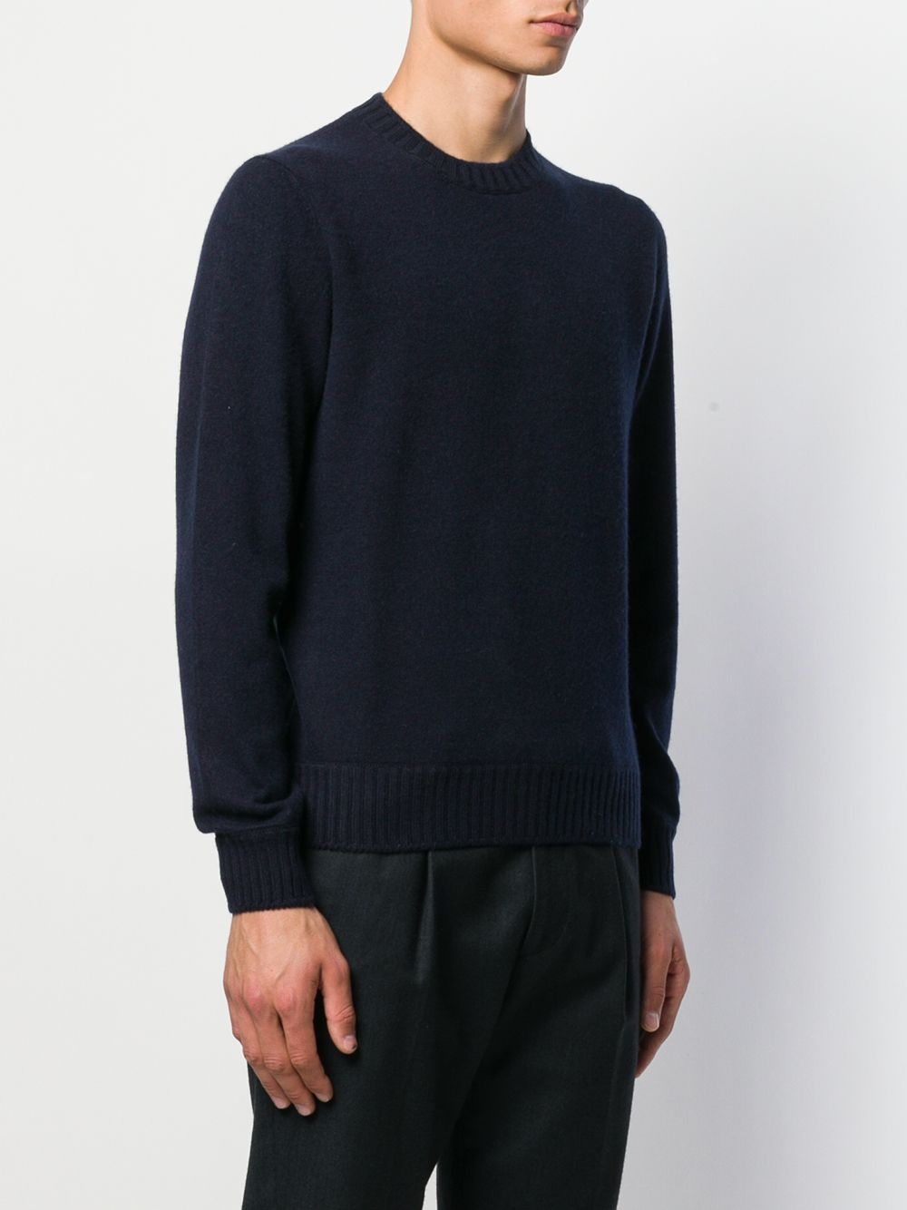 Maglione a girocollo di colore blu in cashmere misto cotone di Barba. Modello con maniche lunghe e orlo e polsini a coste.