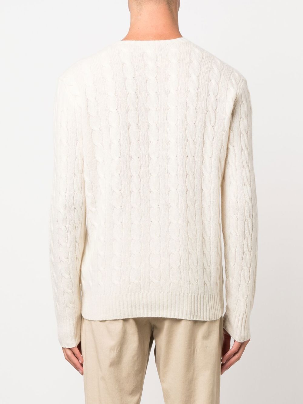 Maglia chunky intrecciata, caratteristico motivo Polo Pony, bordo con lavorazione a coste, scollo rotondo, scollo rotondo e maniche lunghe.