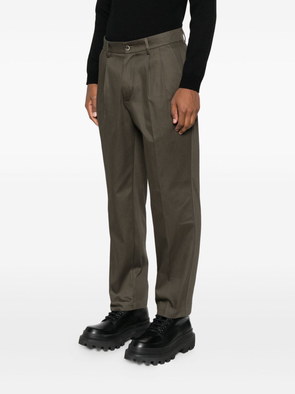 Pantaloni verde militare con pieghe, tasche laterali anteriori e patta con bottoni, vita media | Barena