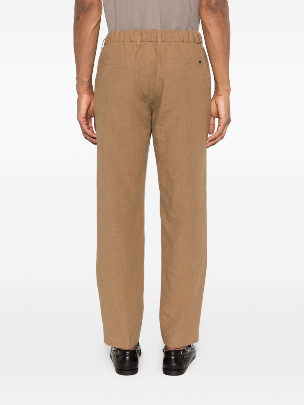 Pantaloni dritti a pieghe con chiusura a bottoni marroni, parte anteriore a pieghe, elastico in vita, tasche a filetto e gamba dritta. Un must-have per la stagione..