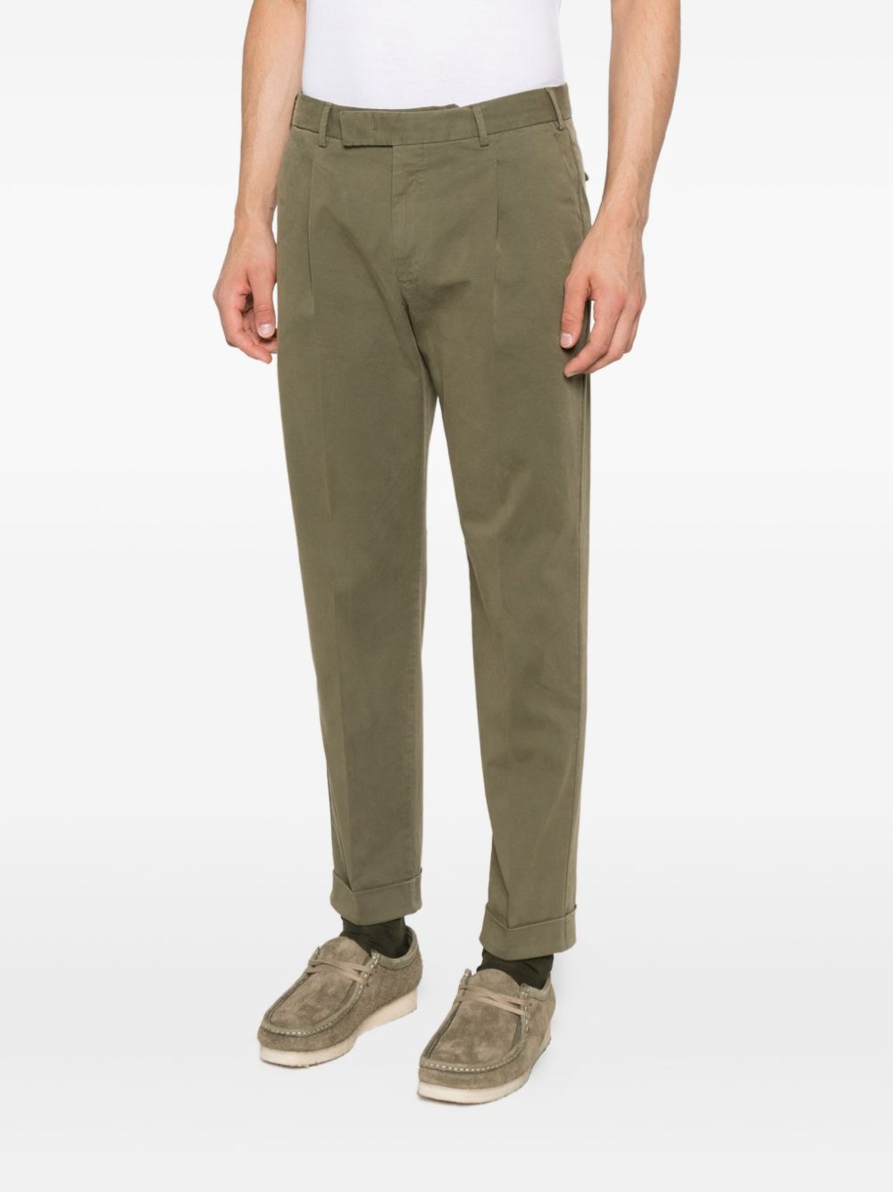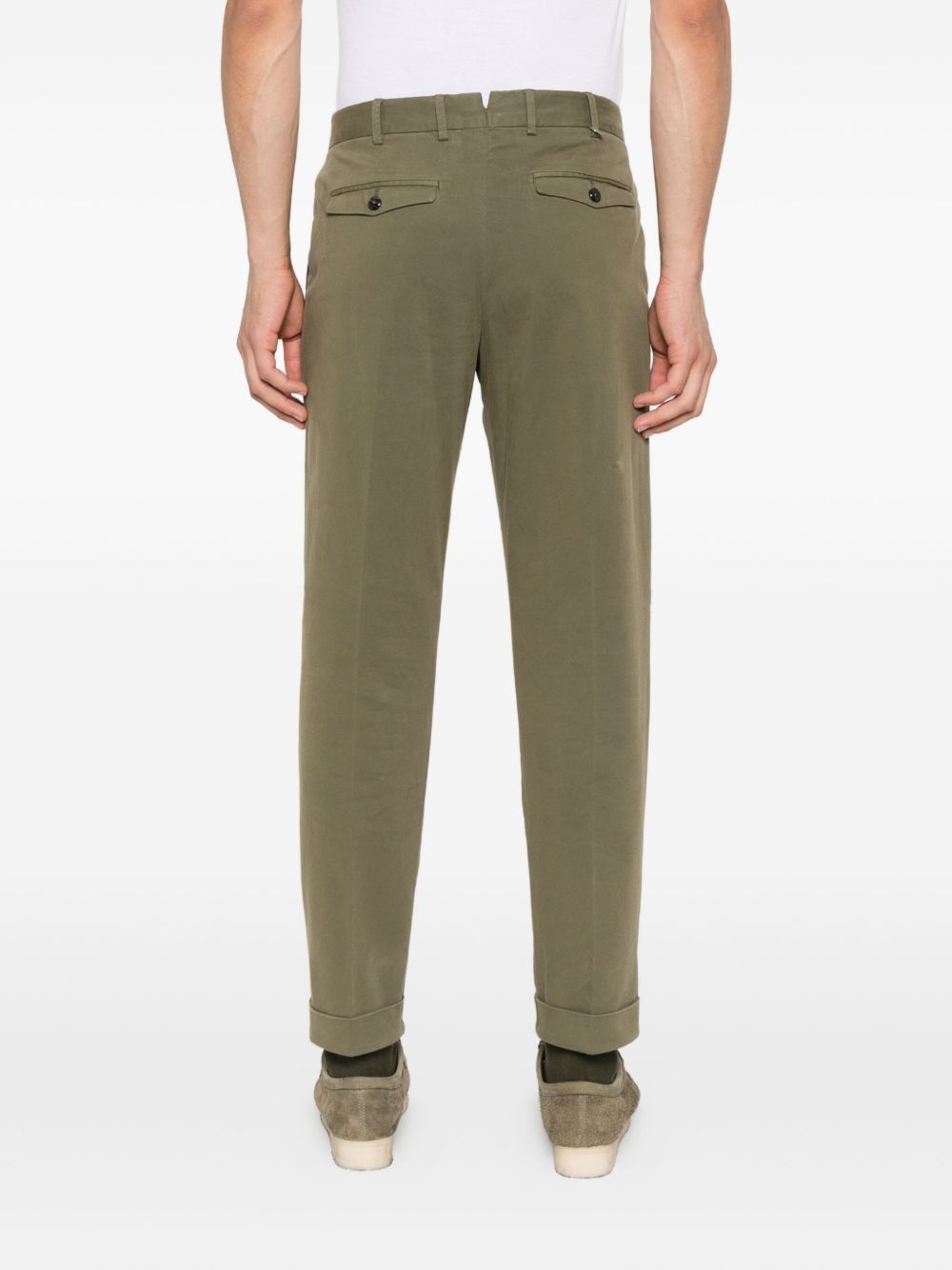 PT Torino Pantaloni con dettagli plissettati verdi, orli risvoltati, bottoni, tasche oblique e passanti per cintura. Un must-have per l'Autunno Inverno 2025..