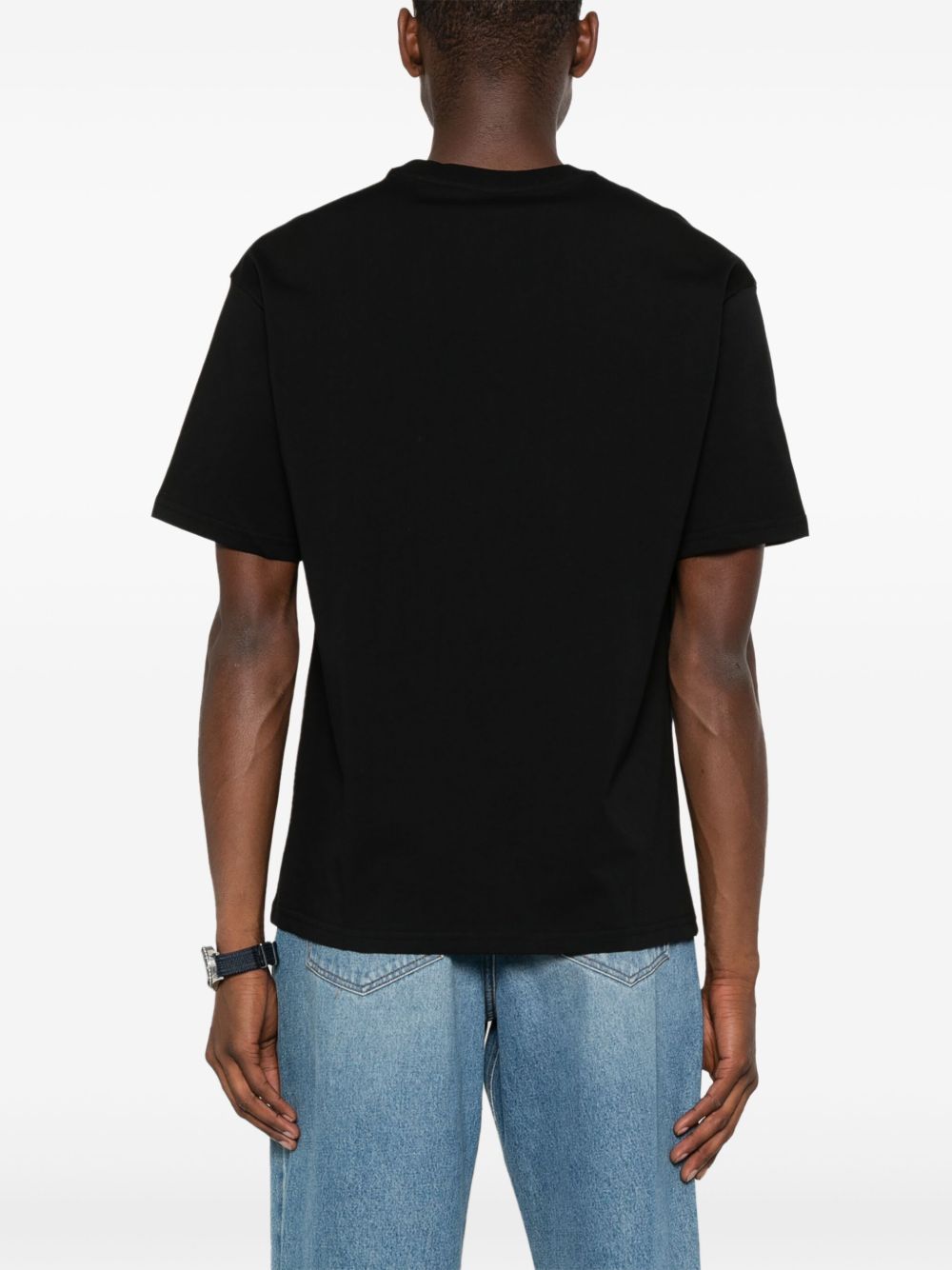 T-shirt nera in jersey di cotone elasticizzato, girocollo a coste, maniche corte, stampa del logo sul davanti, orlo dritto | A.P.C.