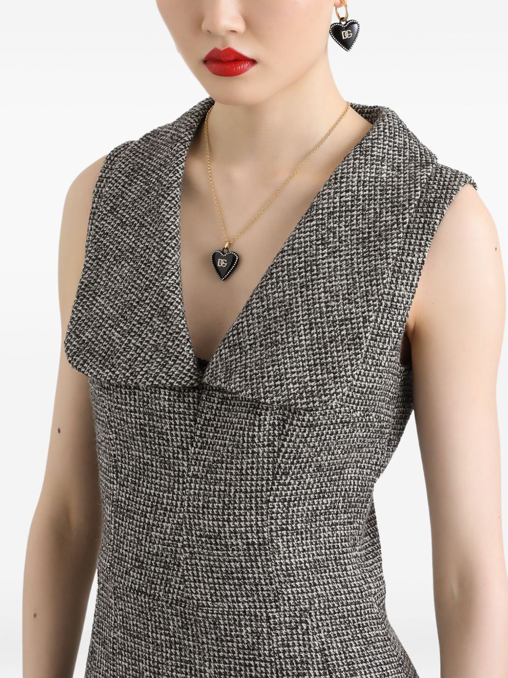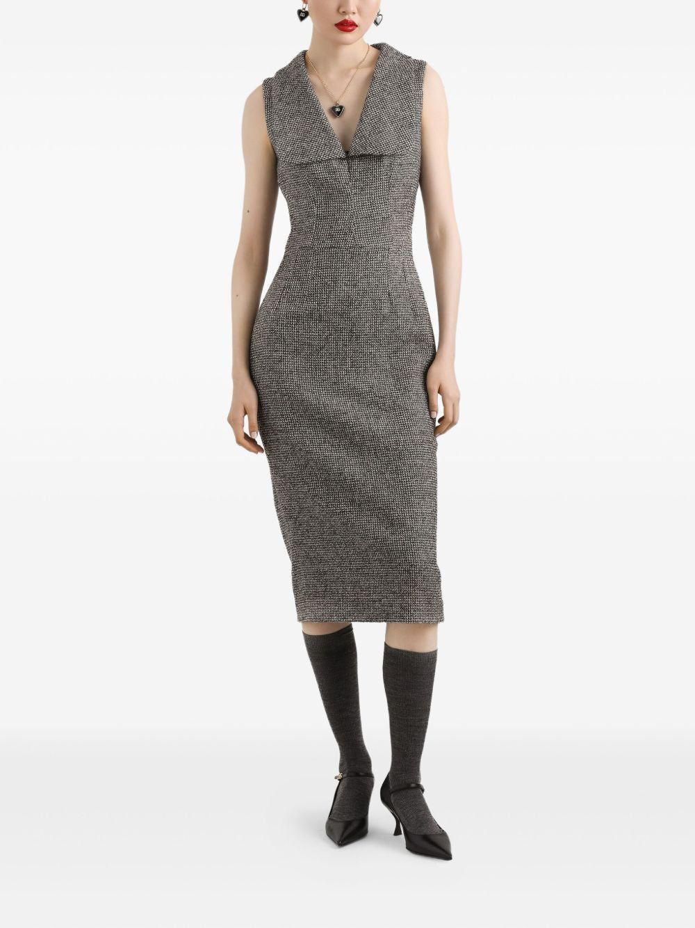 Abito grigio in modello pied de poule nero senza maniche scollo a V chiusura con zip nascosta | Dolce & Gabbana