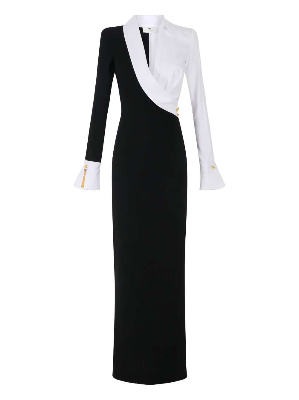 Elisabetta Franchi Abito lungo con colletto a camicia e spacco laterale