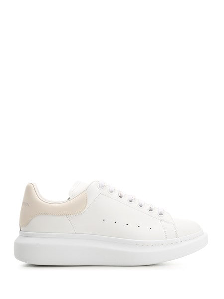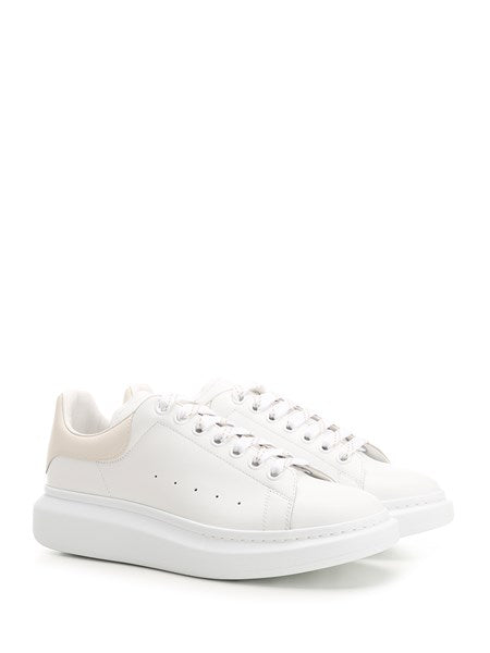 Sneaker "Oversize" in pelle bianca con suola oversize in gomma e talloncino vaniglia con logo di Alexander McQueen.