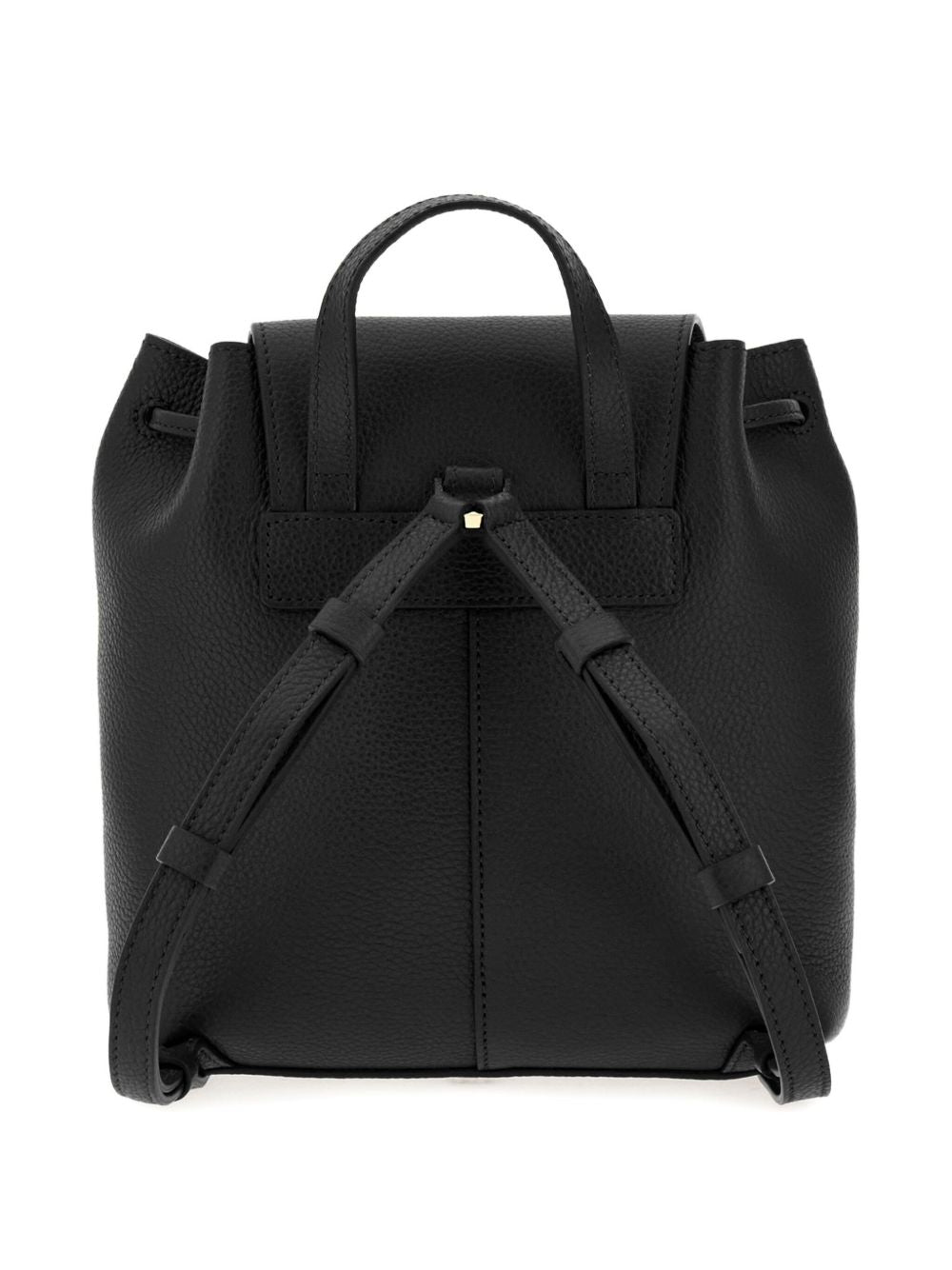 zaino pelle di vitello nera con patta geometrica, chiusura con coulisse, tasche anteriori | Ferragamo