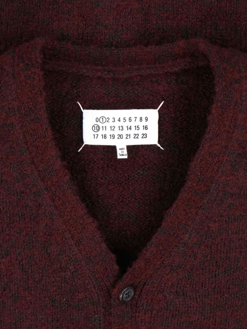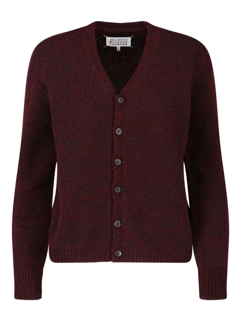 Cardigan rosso con scollo a V, chiusura con bottoni, maniche lunghe, misto lana | Maison Margiela