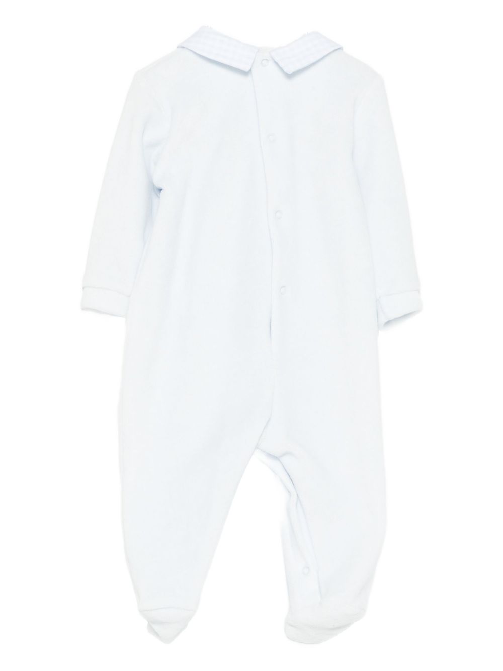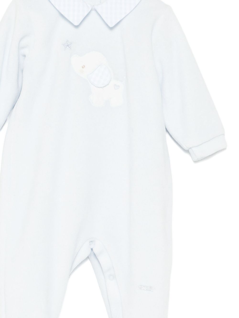 Colletto a righe azzurro, chiusura con bottoni automatici, motivo elefante, maniche lunghe