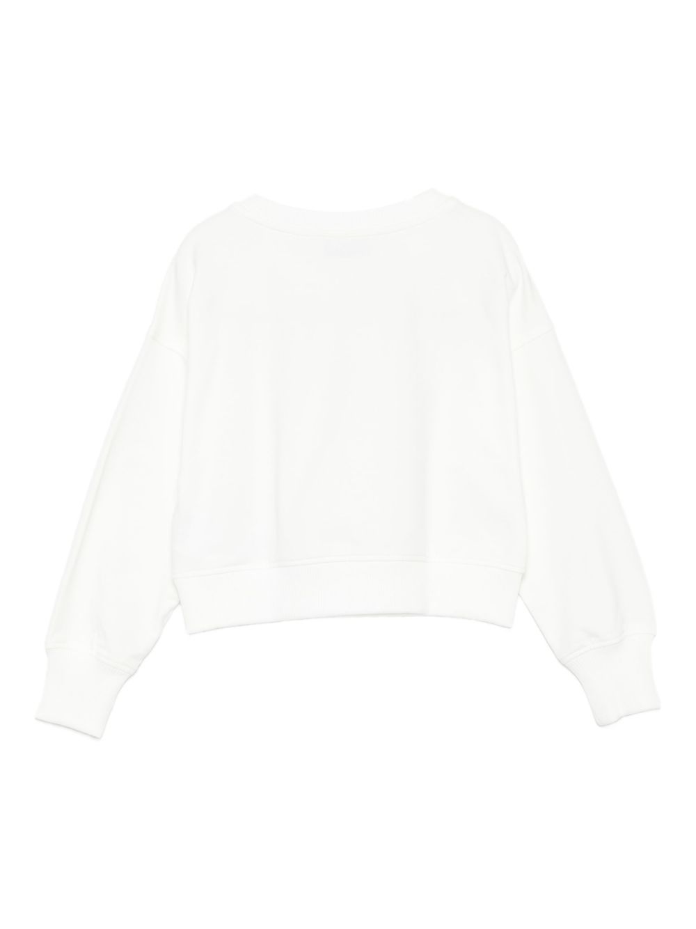 Scopri la Moschino Kids Felpa con stampa Bear, un must-have per l'autunno inverno 2025. Realizzata in bianco, presenta un girocollo, maniche lunghe e un adorabile orsetto stampato. L'orlo a coste aggiunge un tocco di stile e comfort. Composizione: poliestere 100%, cotone 95%, elastam 5%..