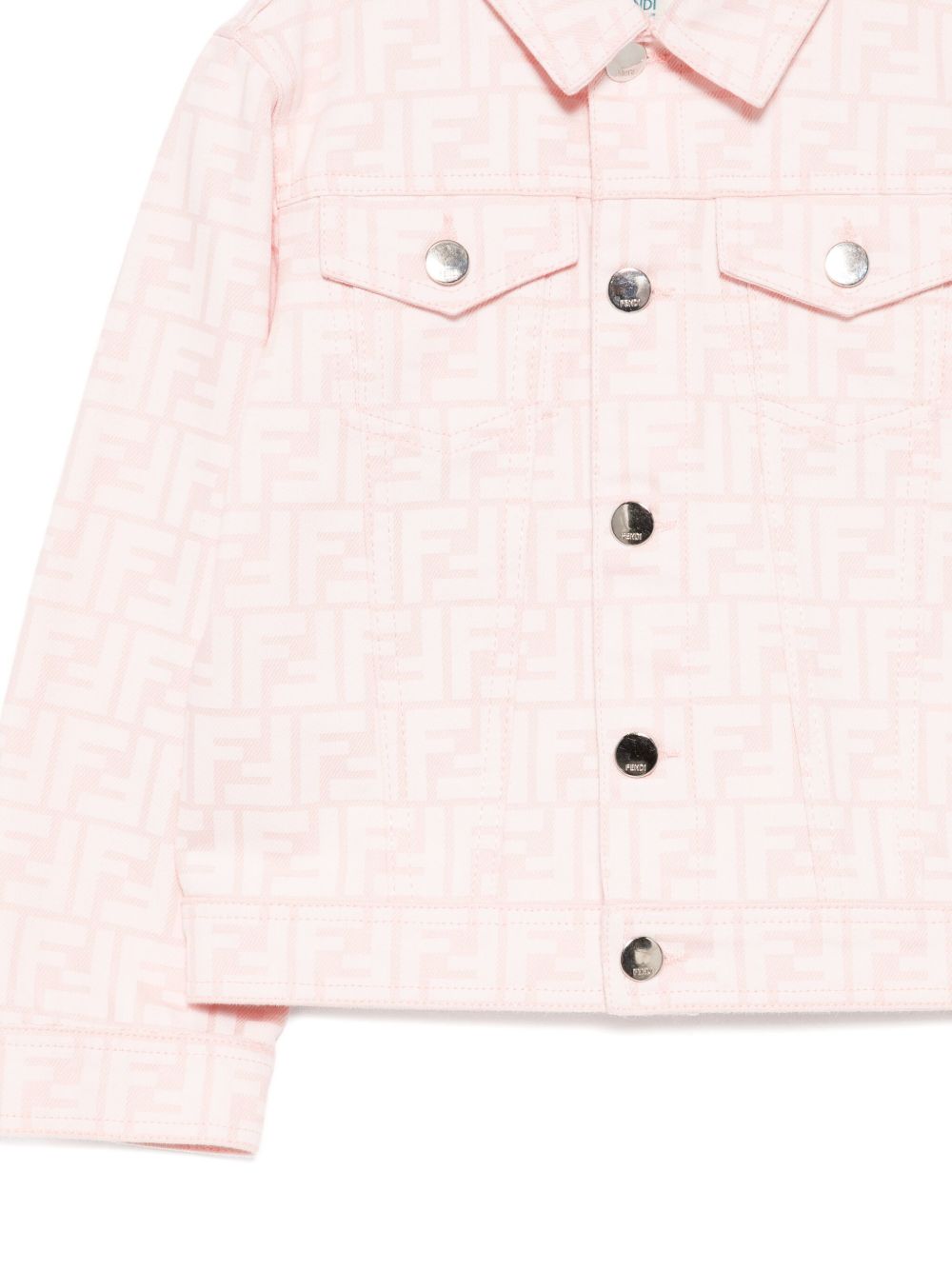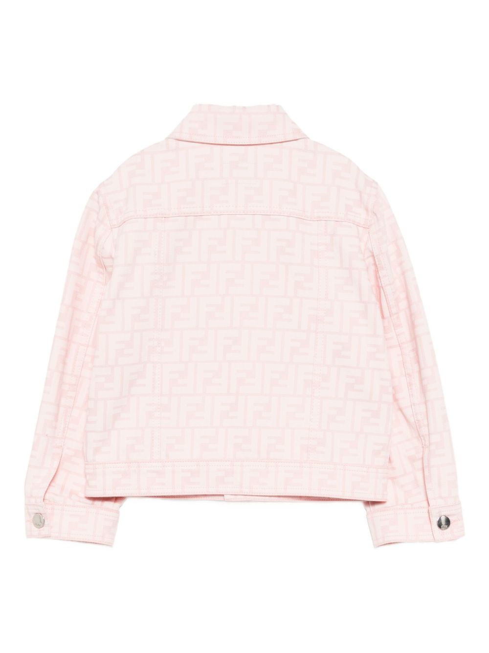 Giacca junior in denim cotton rosa con stampa all over logo FF tone on tone.