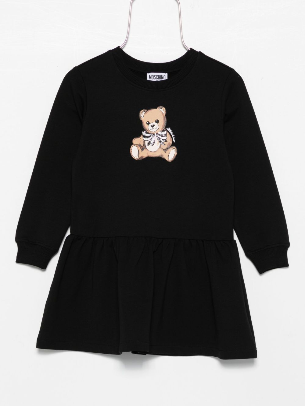 Stampa orsetto nera, scollo rotondo, maniche lunghe