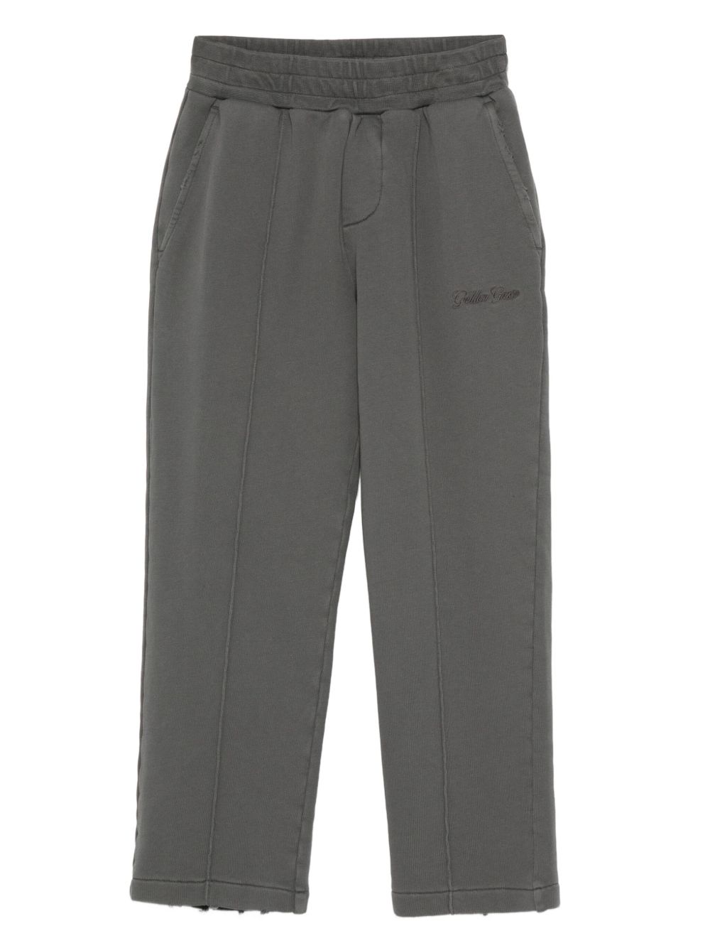 Pantaloni grigio antracite, logo ricamato, elastico in vita, tasche diagonali, orlo sfrangiato | Golden Goose