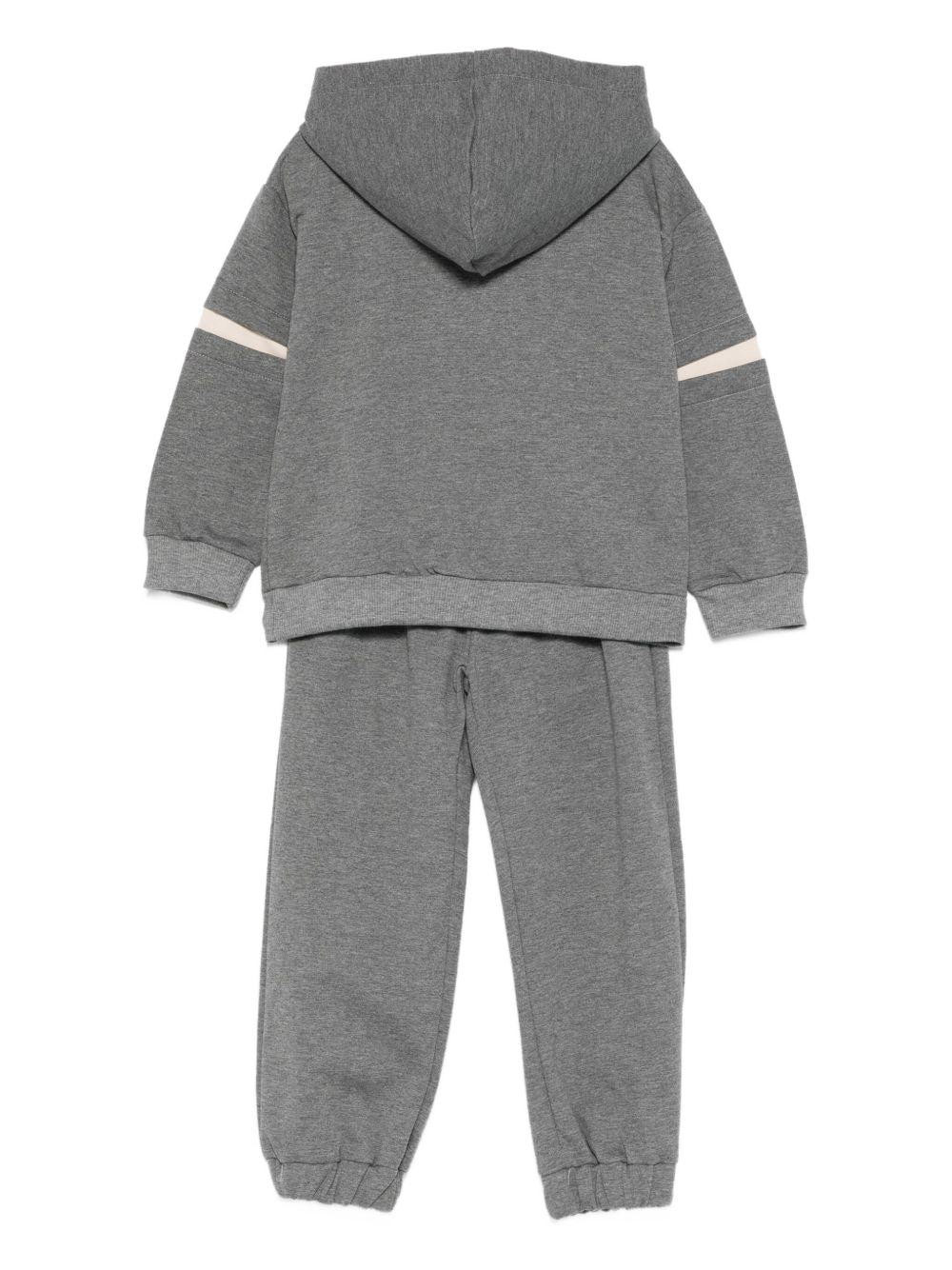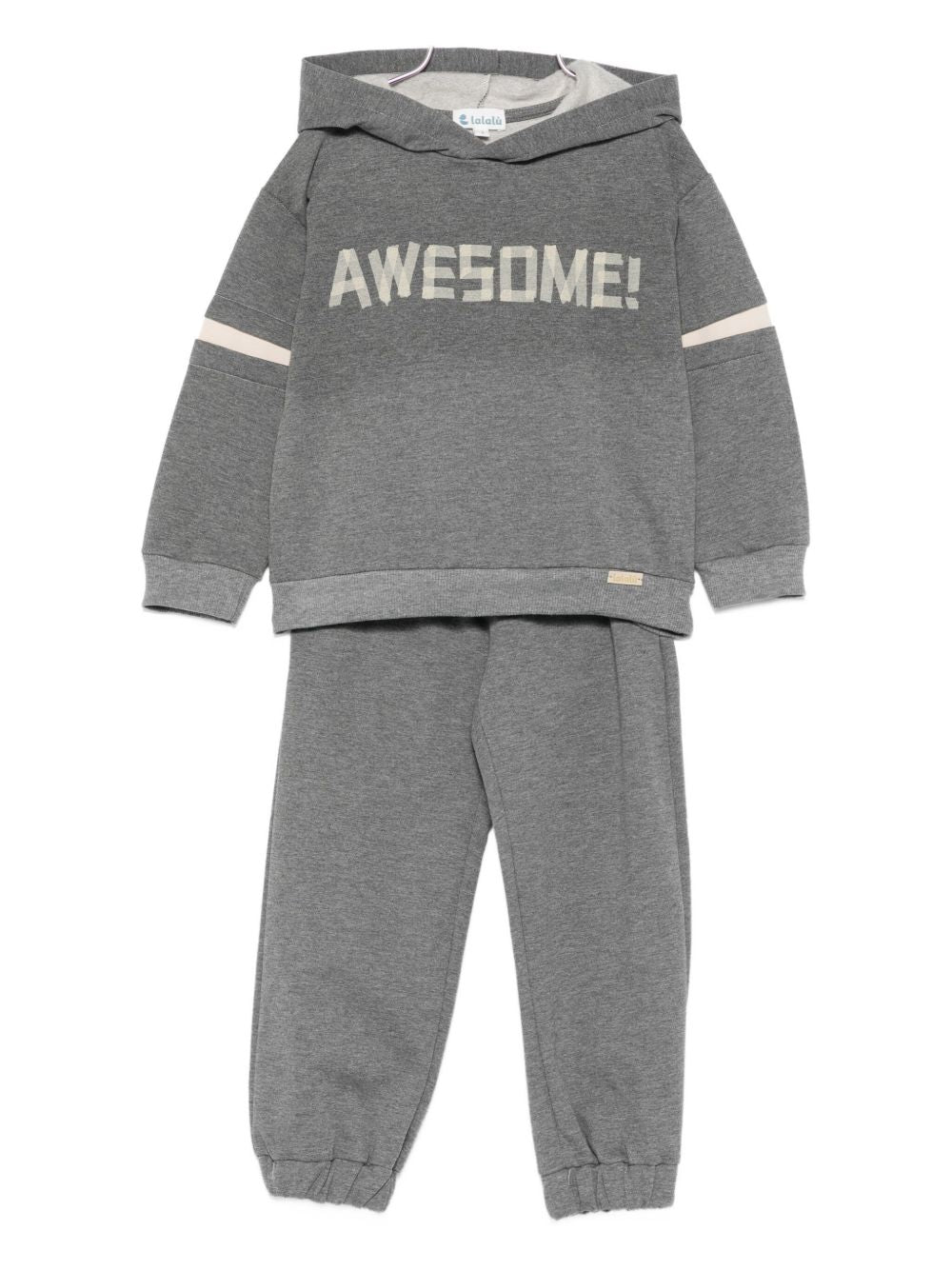 LALALU Tuta con logo e patch con bordi elasticizzati, cappuccio e tasche laterali. Realizzata in Italia con cotone 95% ed elastam 5%..