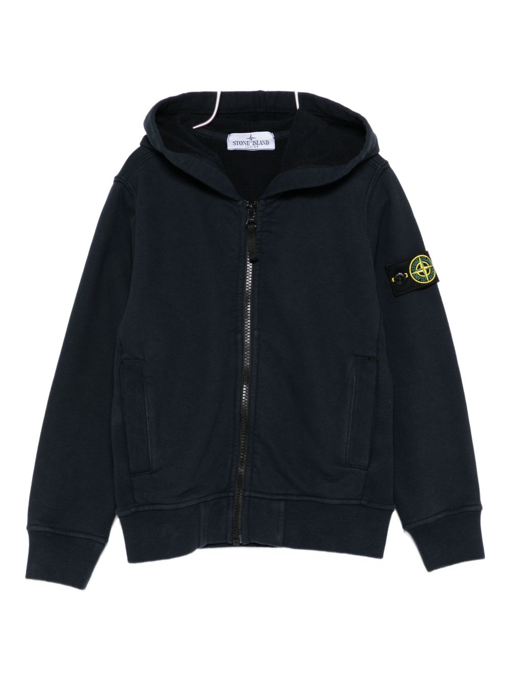 Stone Island Junior Felpa di colore blu con zip e cappuccio