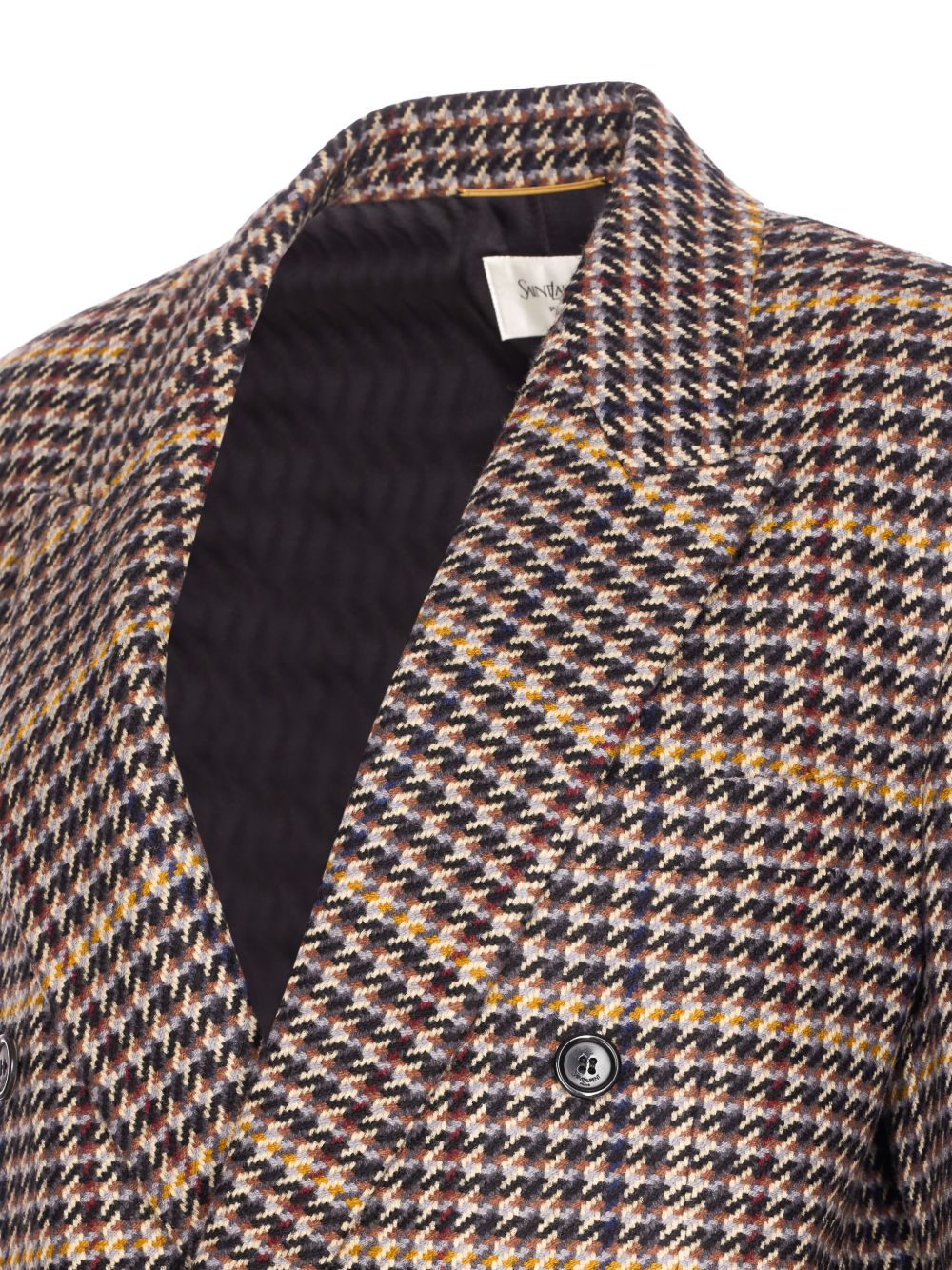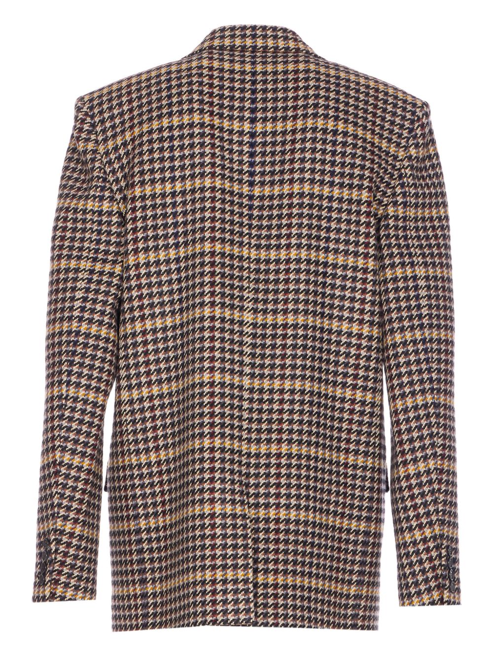 Giacca doppiopetto con sei bottoni e revers a lancia in lana certificata.