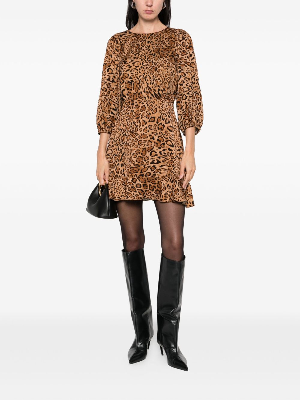 Salovan Store ha selezionato questo modello per il suo stile di alta qualità e il basso impatto ambientale. TWINSET Abito corto con stampa in marrone con stampa leopardata, maniche corte a palloncino e gonna svasata, realizzato in Italia..