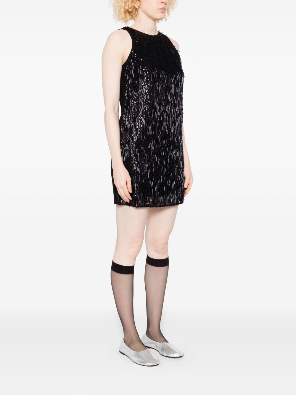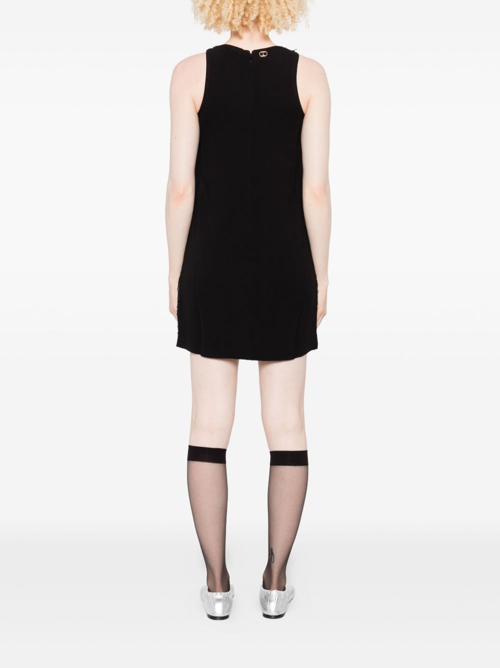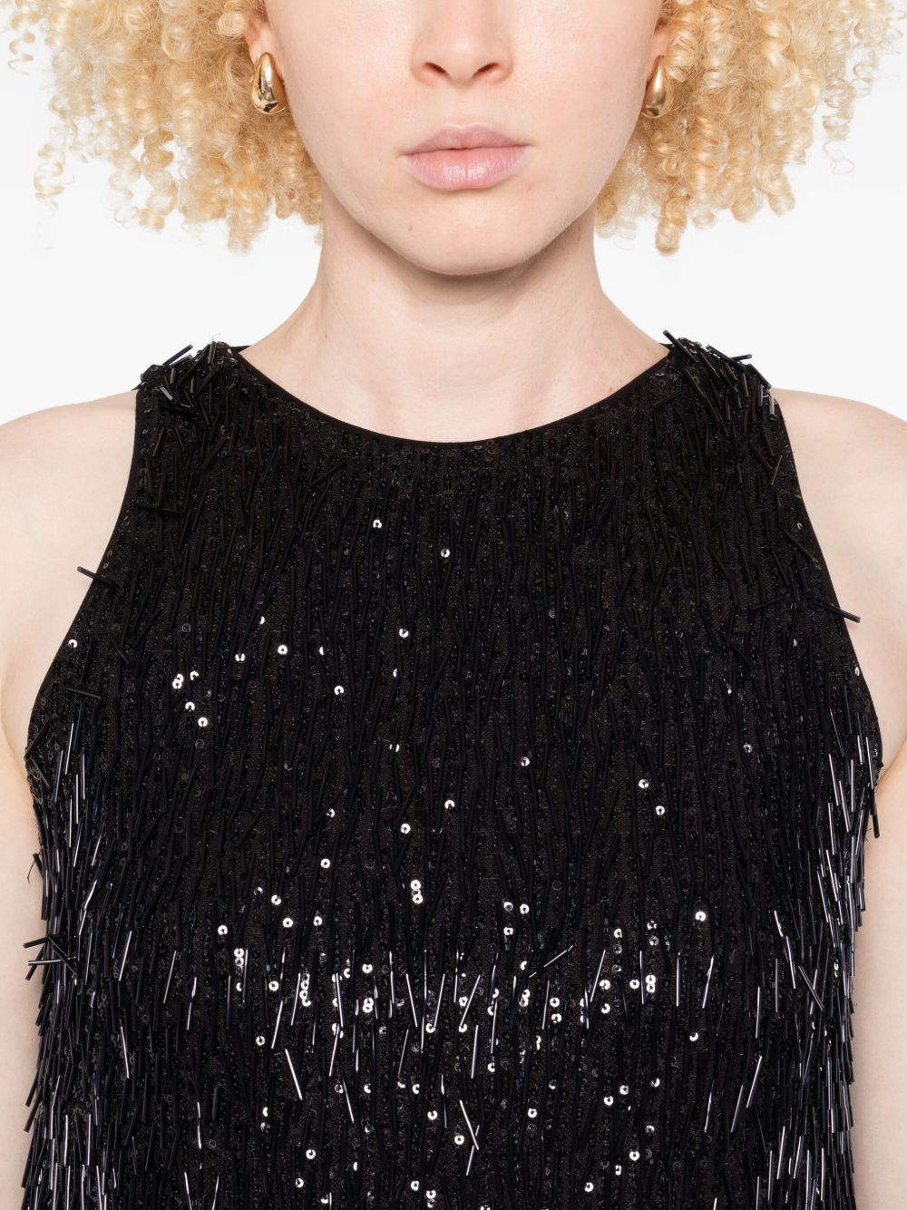 Twinset Abito senza maniche con scollo rotondo, orlo dritto, paillettes nere e frange. Perfetto per serate eleganti e occasioni speciali..