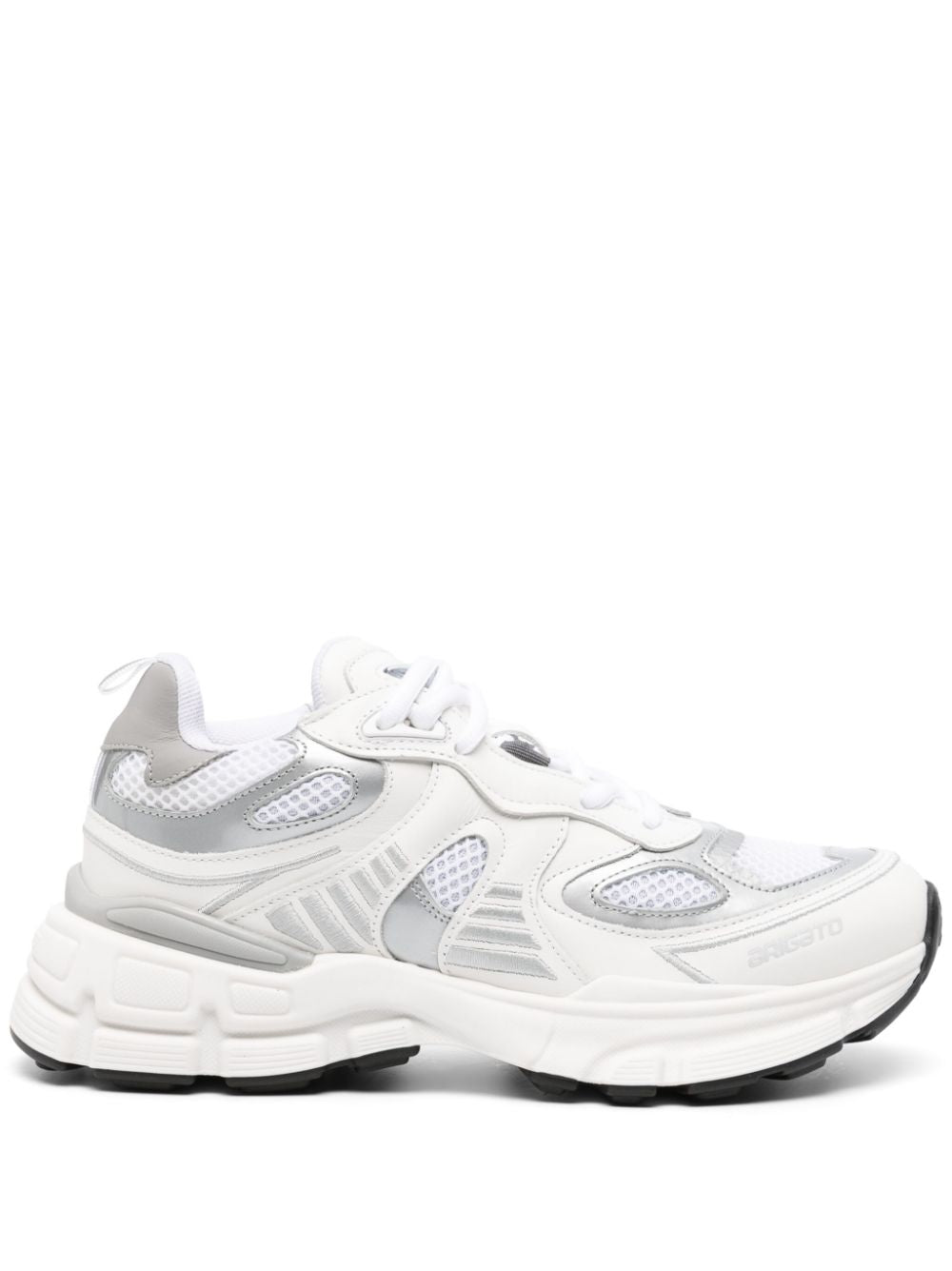 Bianco, pelle di vitello, design a inserti, pannelli in rete, punta tonda, chiusura frontale con lacci e suola chunky in gomma. | Axel Arigato