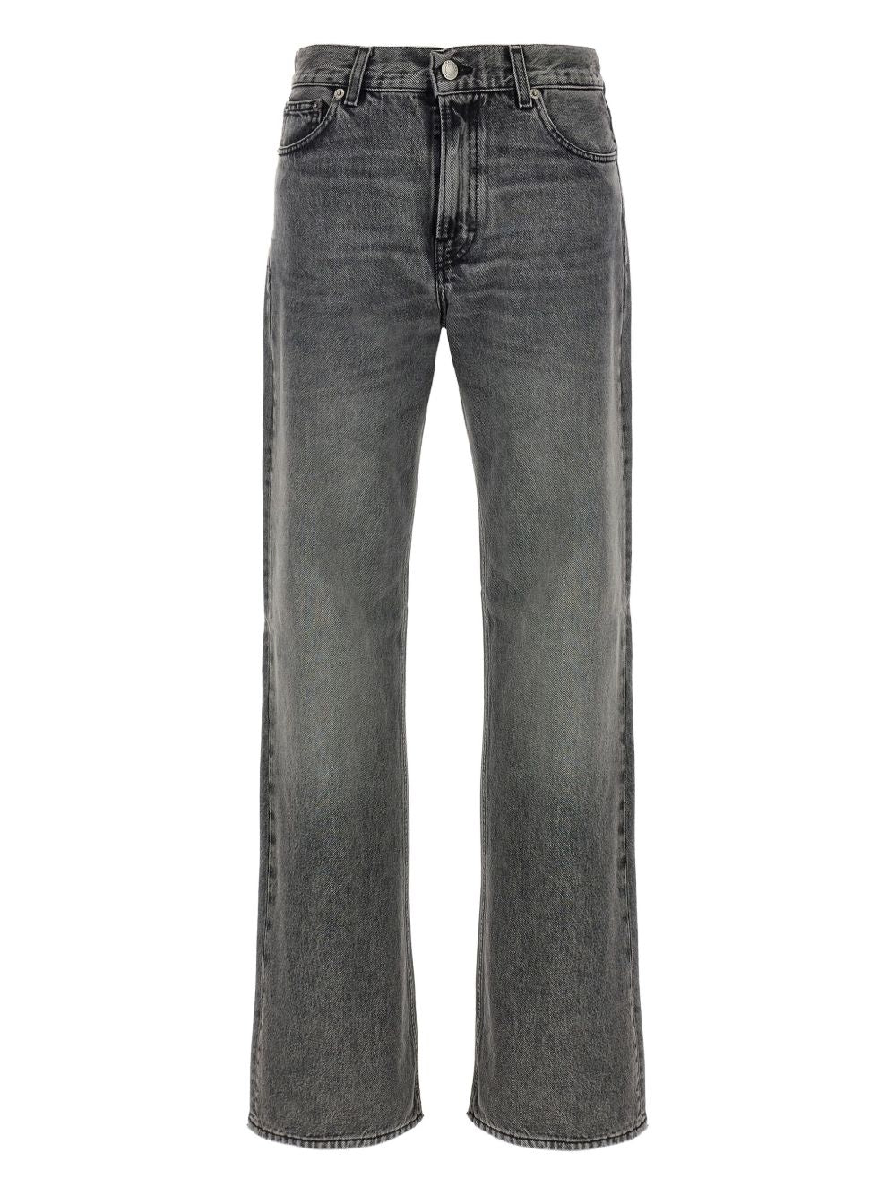 Haikure pantaloni grigi, chiusura con cerniera, bottone, cinque tasche, gamba dritta, passanti per cintura..