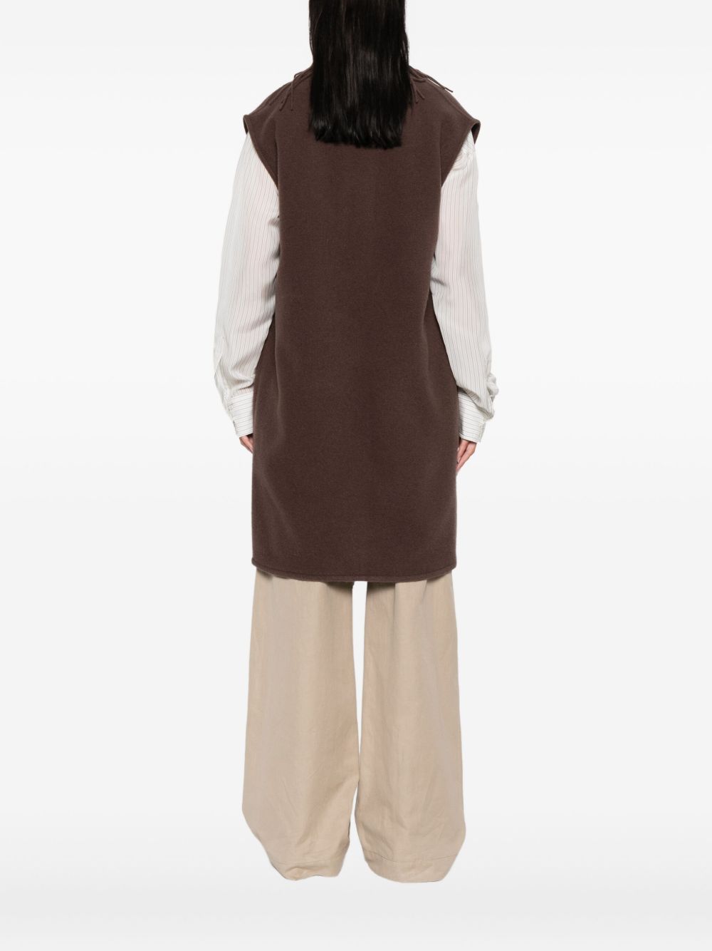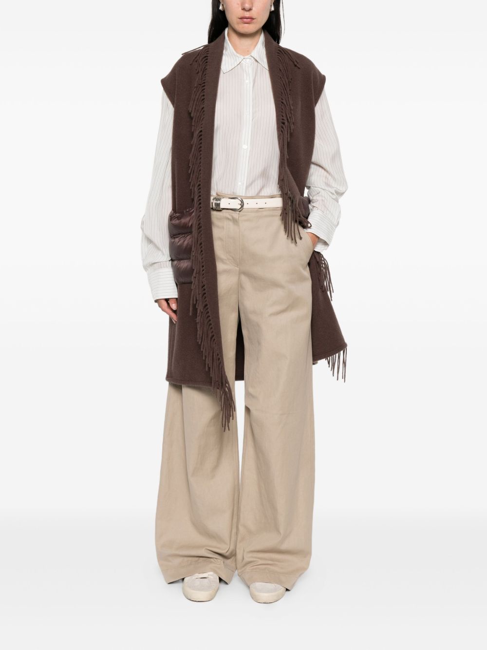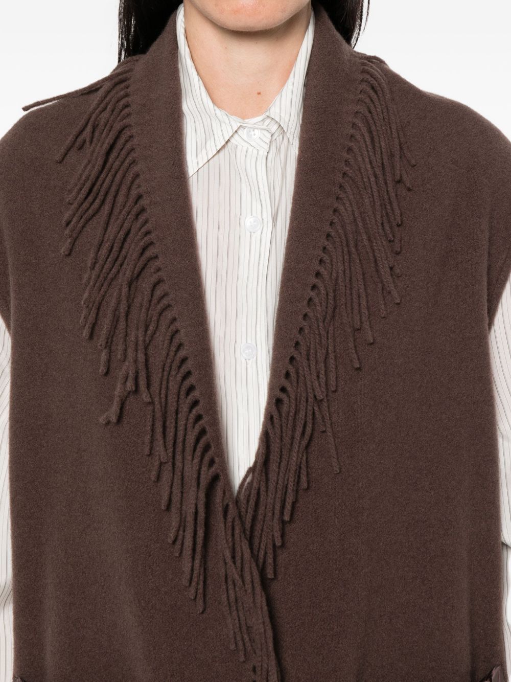 Herno Smanicato marrone con frange, senza maniche, revers a scialle, tasca trapuntata | Herno Smanicato marrone.