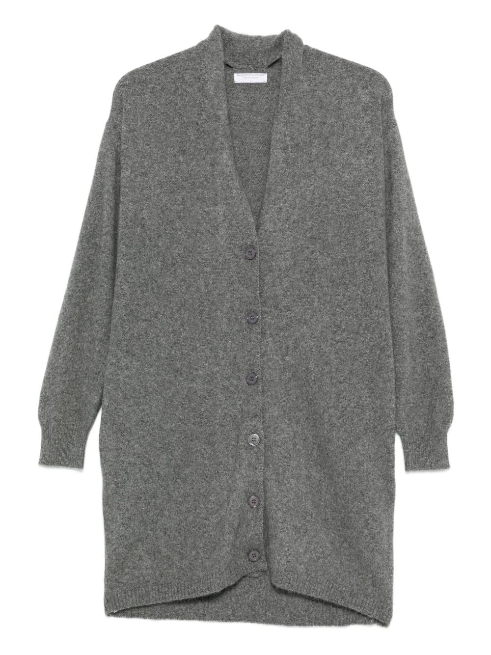 MAJESTIC Maglia cardigan in lana grigio chiaro con bottoni maniche lunghe. Un capo essenziale per il tuo guardaroba autunnale..