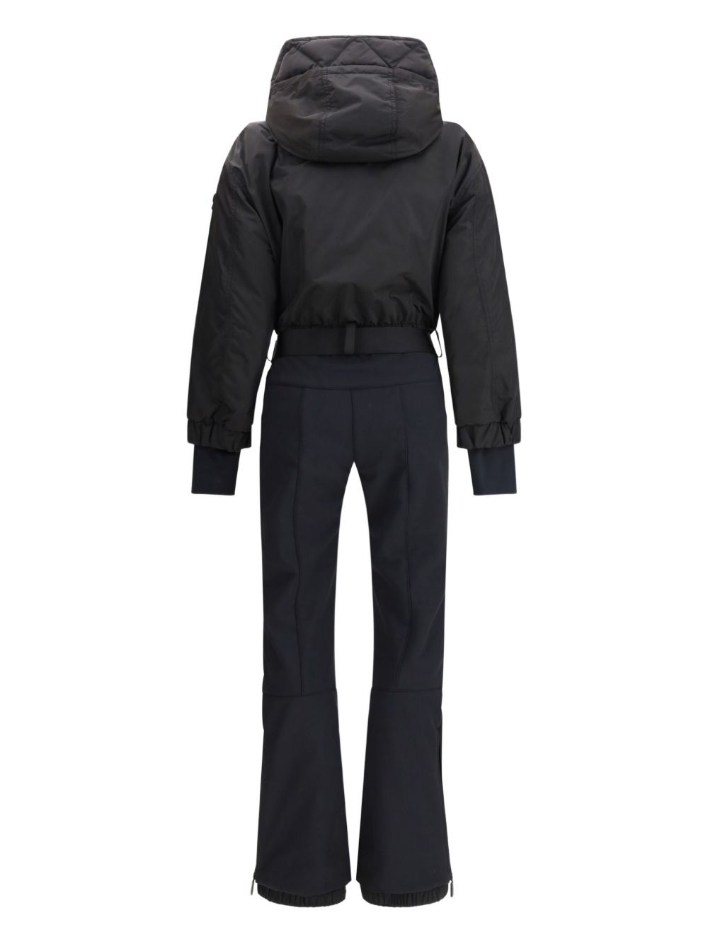 Moncler Grenoble Tuta da sci con cintura. Caratterizzata da un elegante design nero, cappuccio trapuntato e cintura, è l'ideale per le avventure invernali. La chiusura con zip e i dettagli con zip aggiungono un tocco di funzionalità e stile..