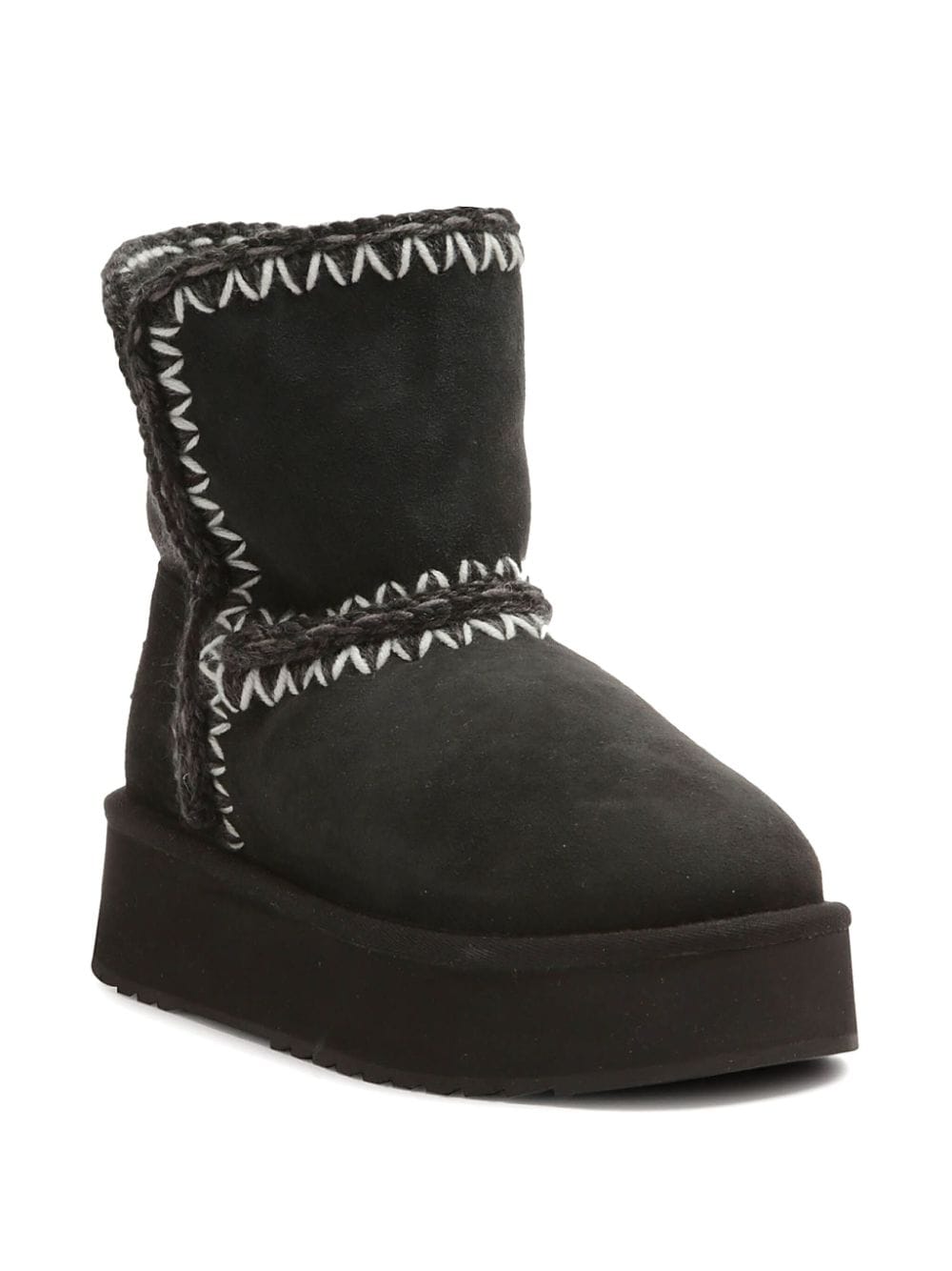 stile slip-on in pelle di pecora nera/bianca suola con plateau in EVA toppa con logo sul retro punta a sopraggitto lunga fino alla caviglia | Mou