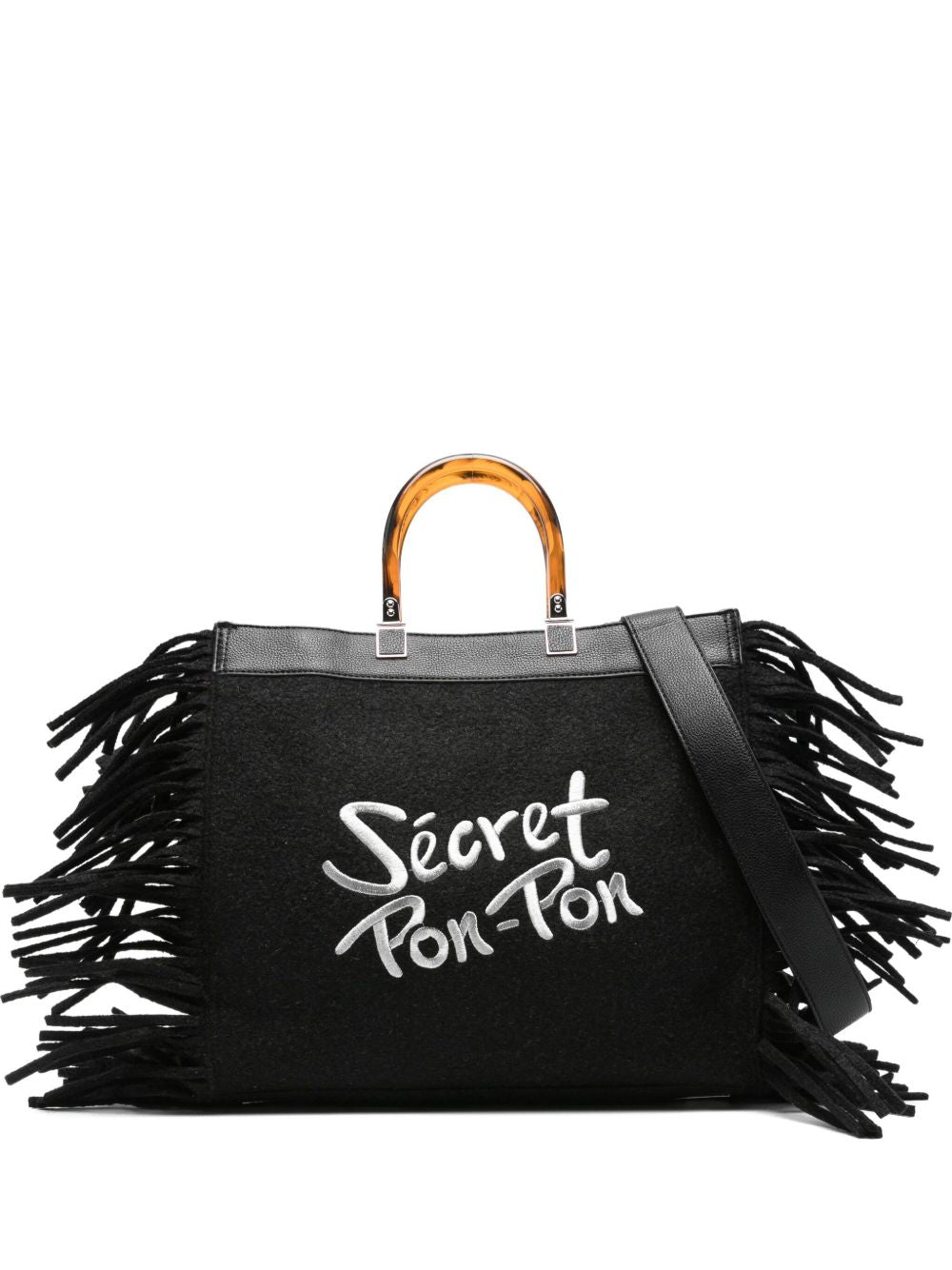 Scopri la borsa ''Secret Pom Pom'' con raffinati dettagli in frange, perfetta per ogni occasione. Un accessorio must-have per l'Autunno Inverno 2025..
