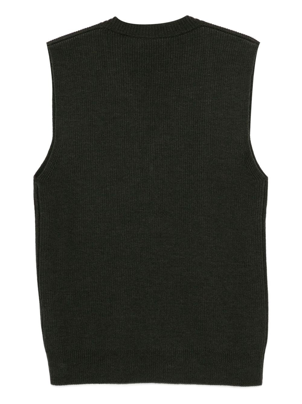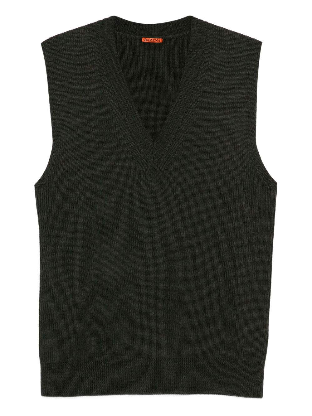 Maglia verde scuro a coste con scollo a V e orlo dritto, senza maniche | Barena