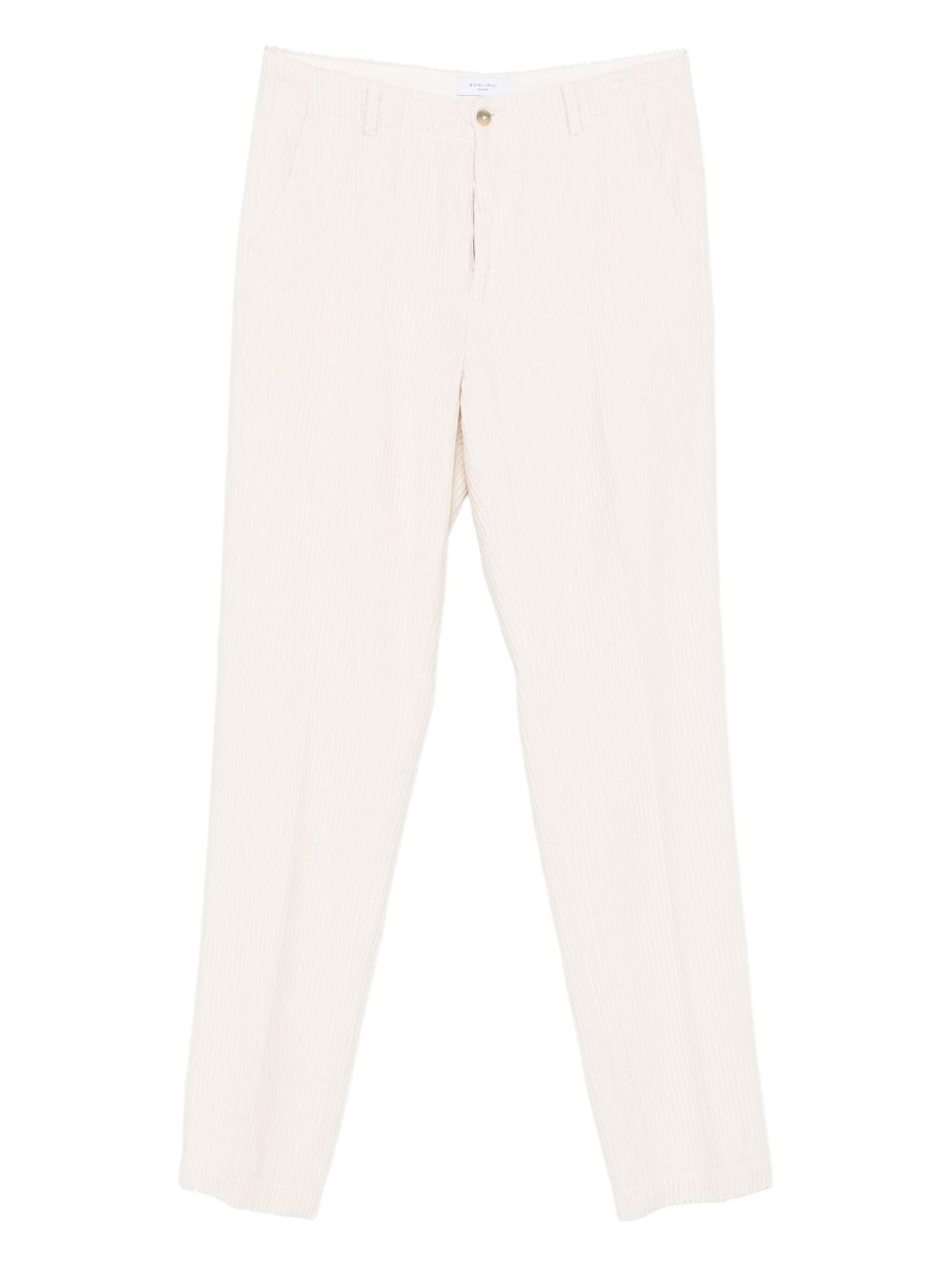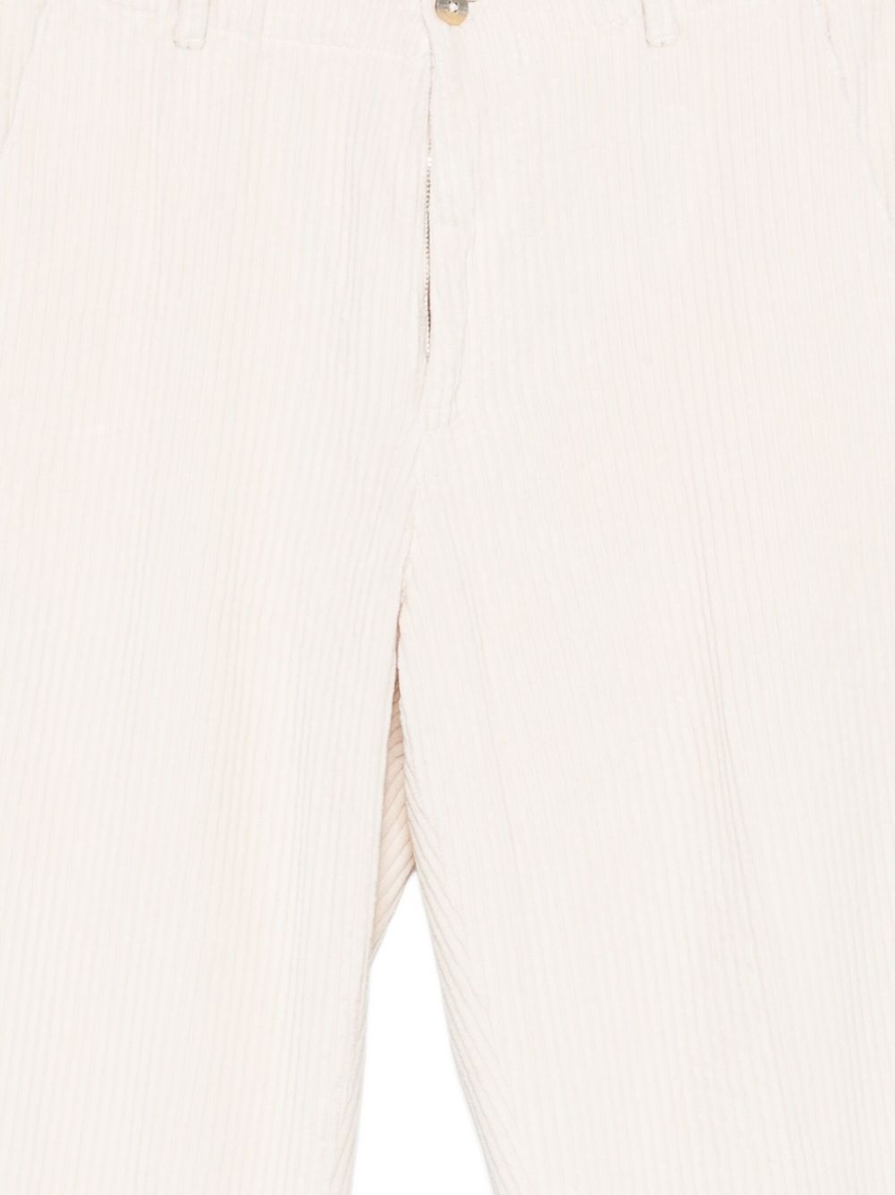 Pantaloni a vita media in velluto a coste beige testurizzato con patta e bottoni e tasche a filetto | Boglioli