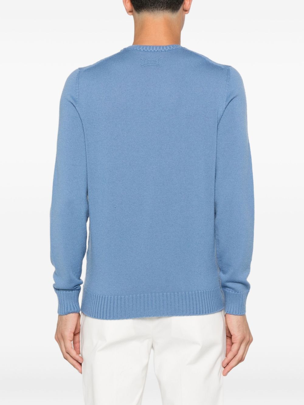 Scopri il maglione girocollo Drumohr in lana merino 100%, caratterizzato da un elegante blu denim, maniche lunghe e dettagli a coste..