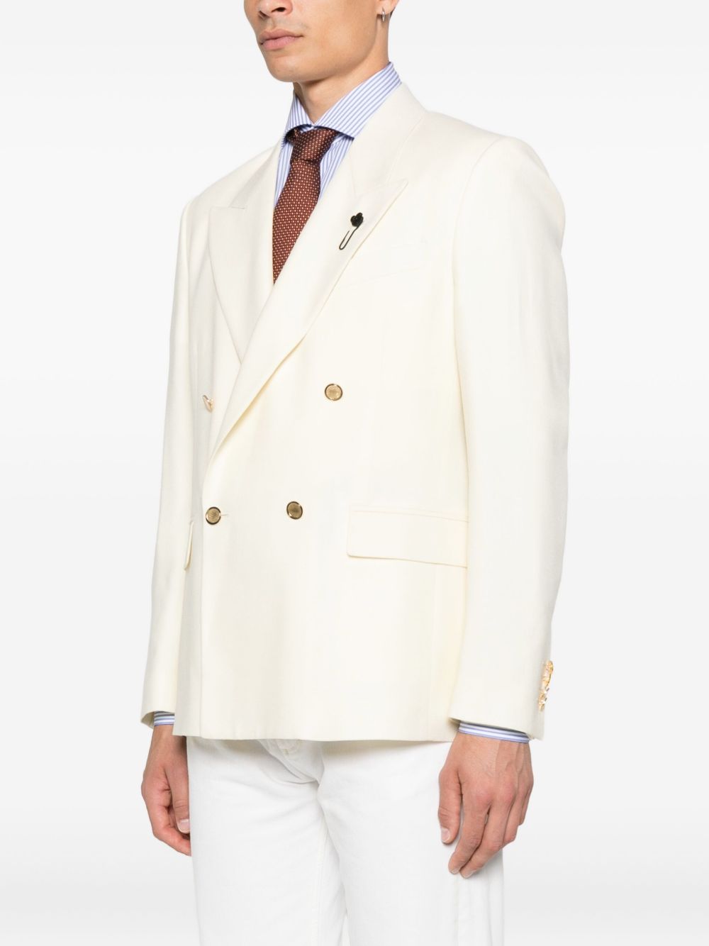 Scopri l'eleganza senza tempo della Lardini Giacca doppiopetto in beige chiaro. Realizzata in 100% pura lana vergine, presenta una raffinata chiusura doppiopetto, maniche lunghe e tasche con patta. I polsini decorati con dettagli a catena aggiungono un tocco di originalità. Perfetta per l'Autunno Inverno 2025 e interamente Made in Italy, questa giacca è un must-have per ogni guardaroba..