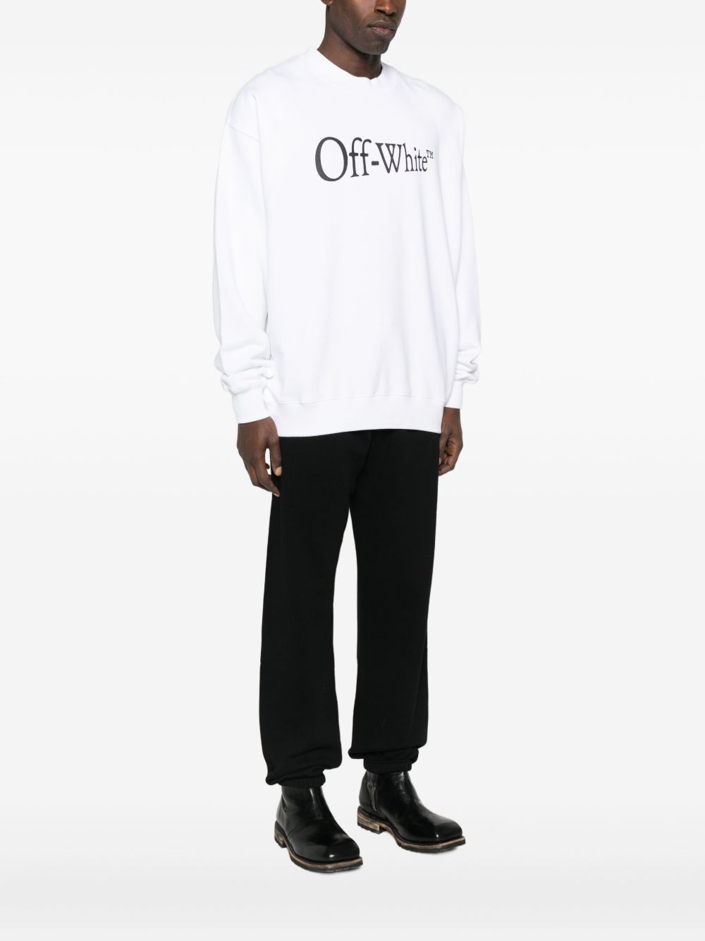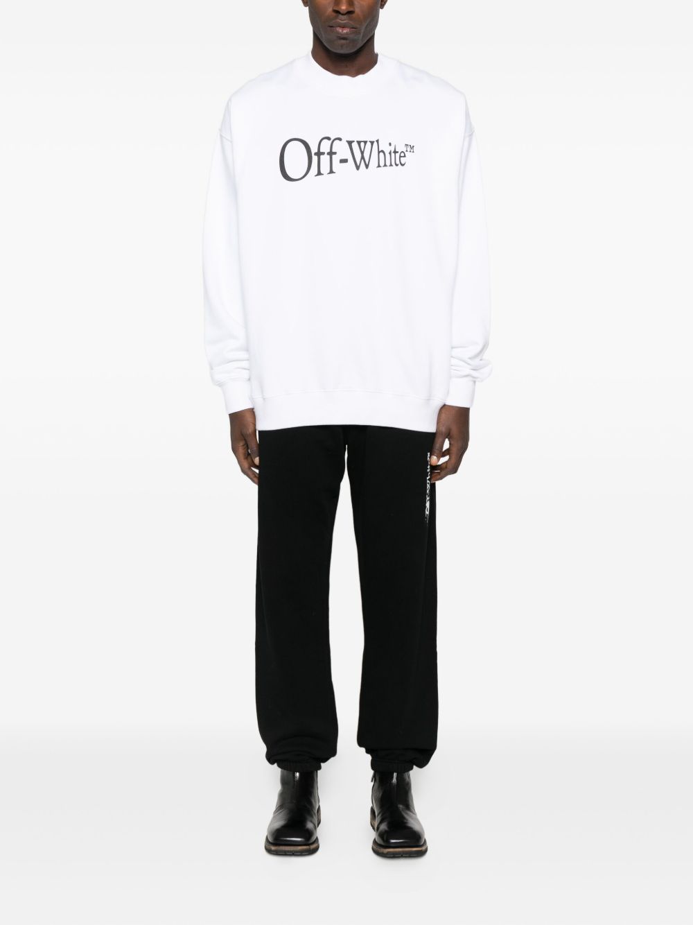 Off White Felpa bianca manica lunga, girocollo con logo