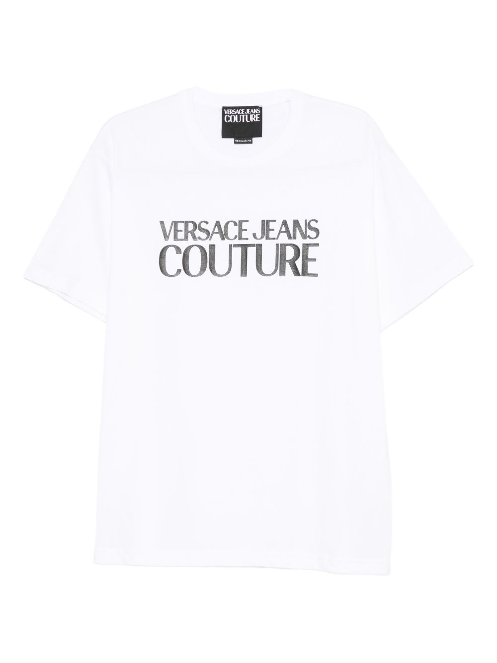 Versace Jeans Couture T-shirt con logo in cotone bianco, maniche corte e girocollo. Perfetta per uno stile casual ma sofisticato, presenta una stampa con logo distintivo..