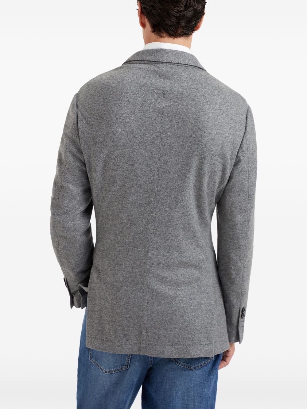 Revers classici, tasca a filetto sul petto, chiusura frontale con bottoni, due tasche laterali applicate, maniche lunghe e polsini con bottone. Materiale: cashmere misto cotone. Colore: di colore grigio.