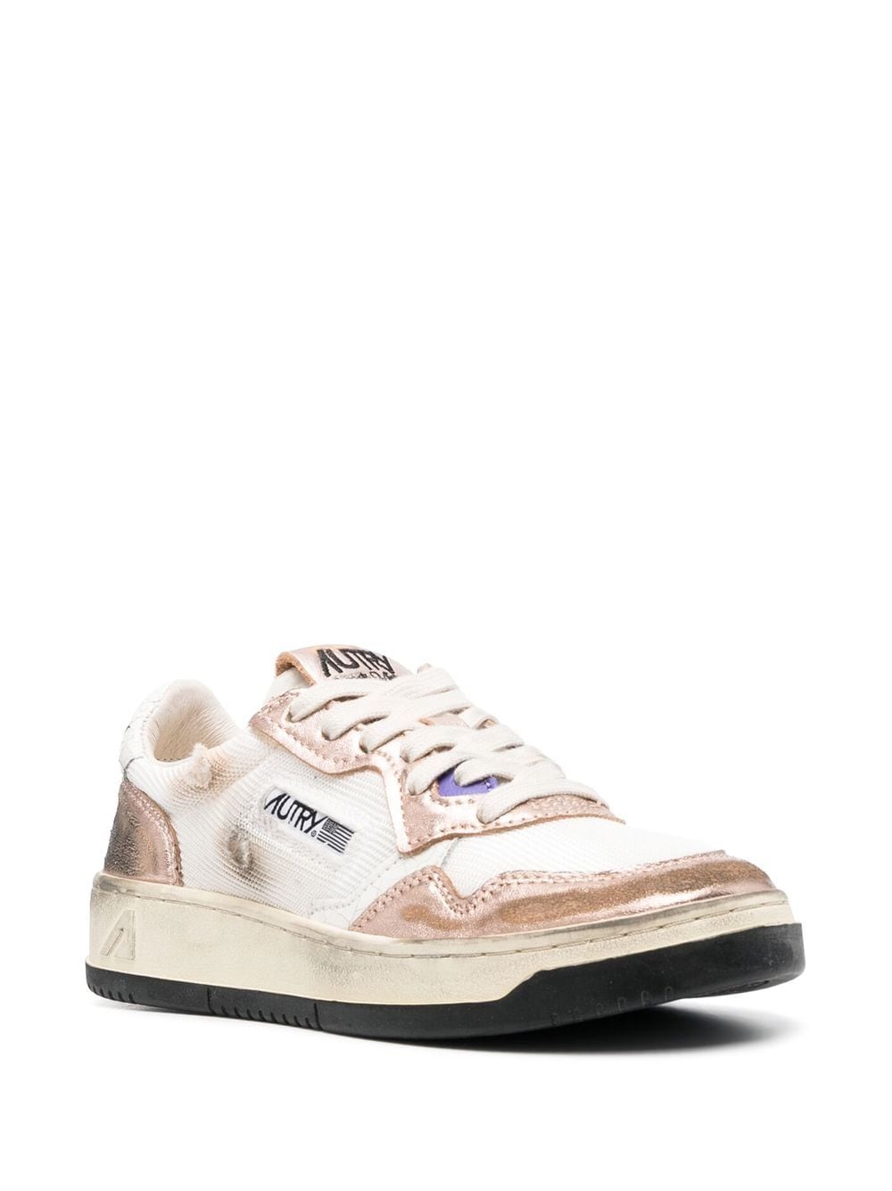 Bianco, color oro, pelle di vitello, design a inserti, linguetta con logo ricamato, punta tonda, chiusura frontale con lacci e suola piatta in gomma. | Sneakers Medallist.