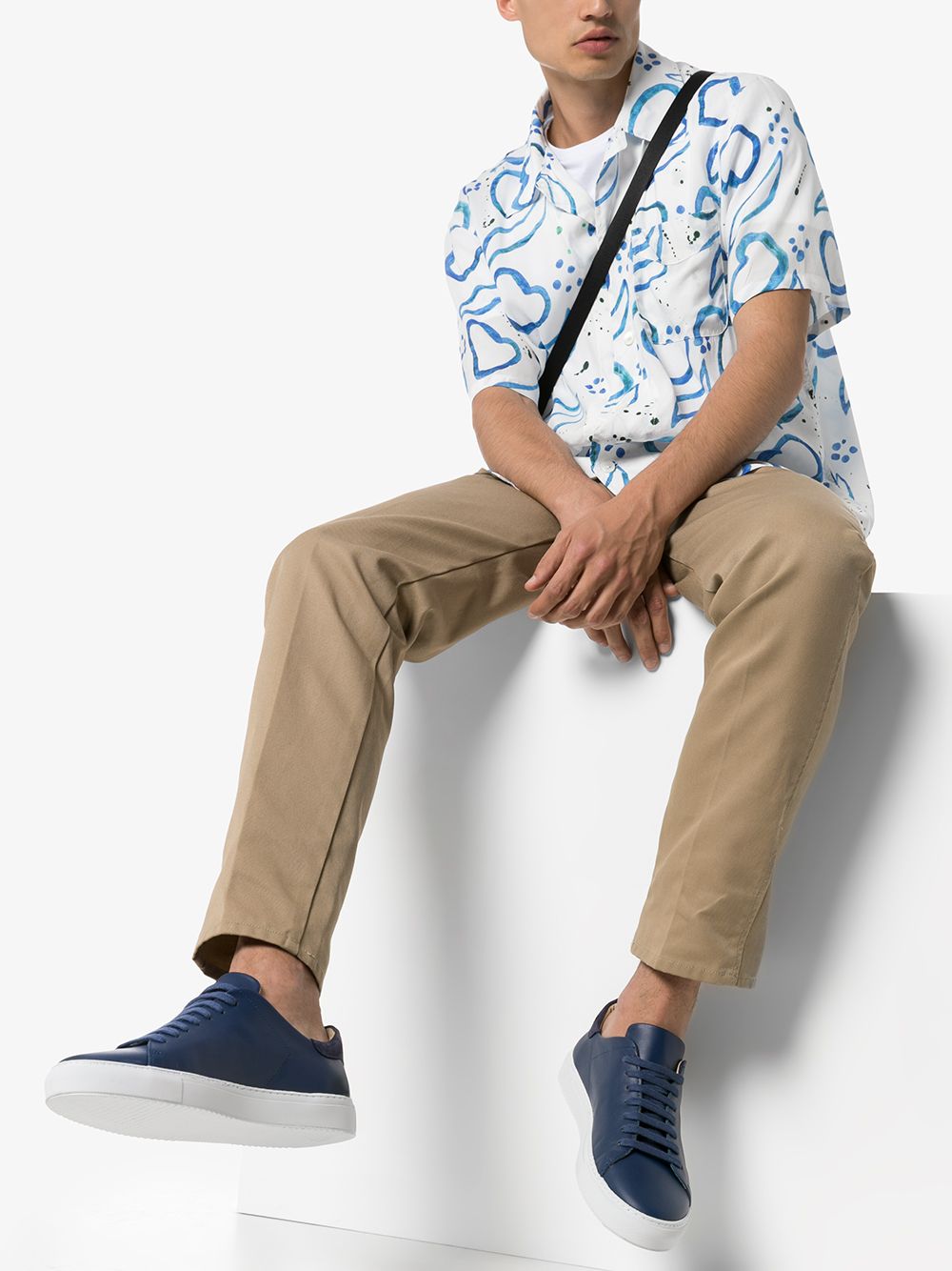 Sneakers Clean 90 di colore blu in pelle di Axel Arigato. Modello con suola in gomma bianca, chiusura con lacci e punta tonda. | Axel Arigato