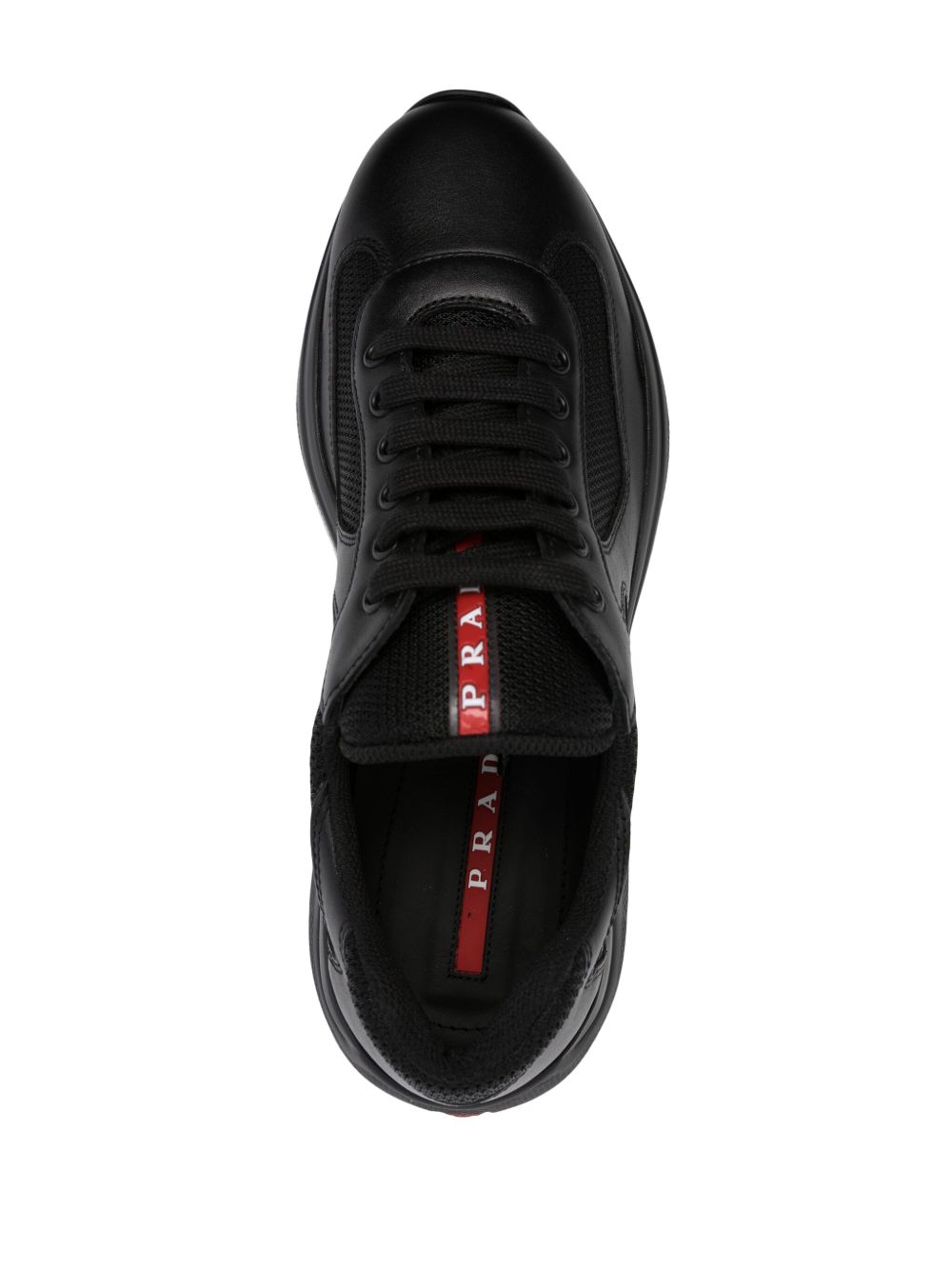 Le Prada Sneakers America's Cup incarnano l'essenza dell'eleganza contemporanea e della funzionalità. Realizzate in una sofisticata combinazione di nylon e pelle di vitello, queste sneakers presentano una silhouette audace, accentuata da una chiusura frontale con lacci e una suola piatta in gomma. Il caratteristico logo della Linea Rossa, un simbolo di innovazione e stile, è sapientemente applicato per conferire un tocco distintivo. Dettagli traforati aggiungono un elemento di leggerezza, mentre la loro composizione ecosostenibile riflette l'impegno di Prada verso un futuro responsabile. Queste sneakers, perfette per l'uomo moderno, sono un perfetto connubio tra estetica e comfort, realizzate con maestria in Italia..