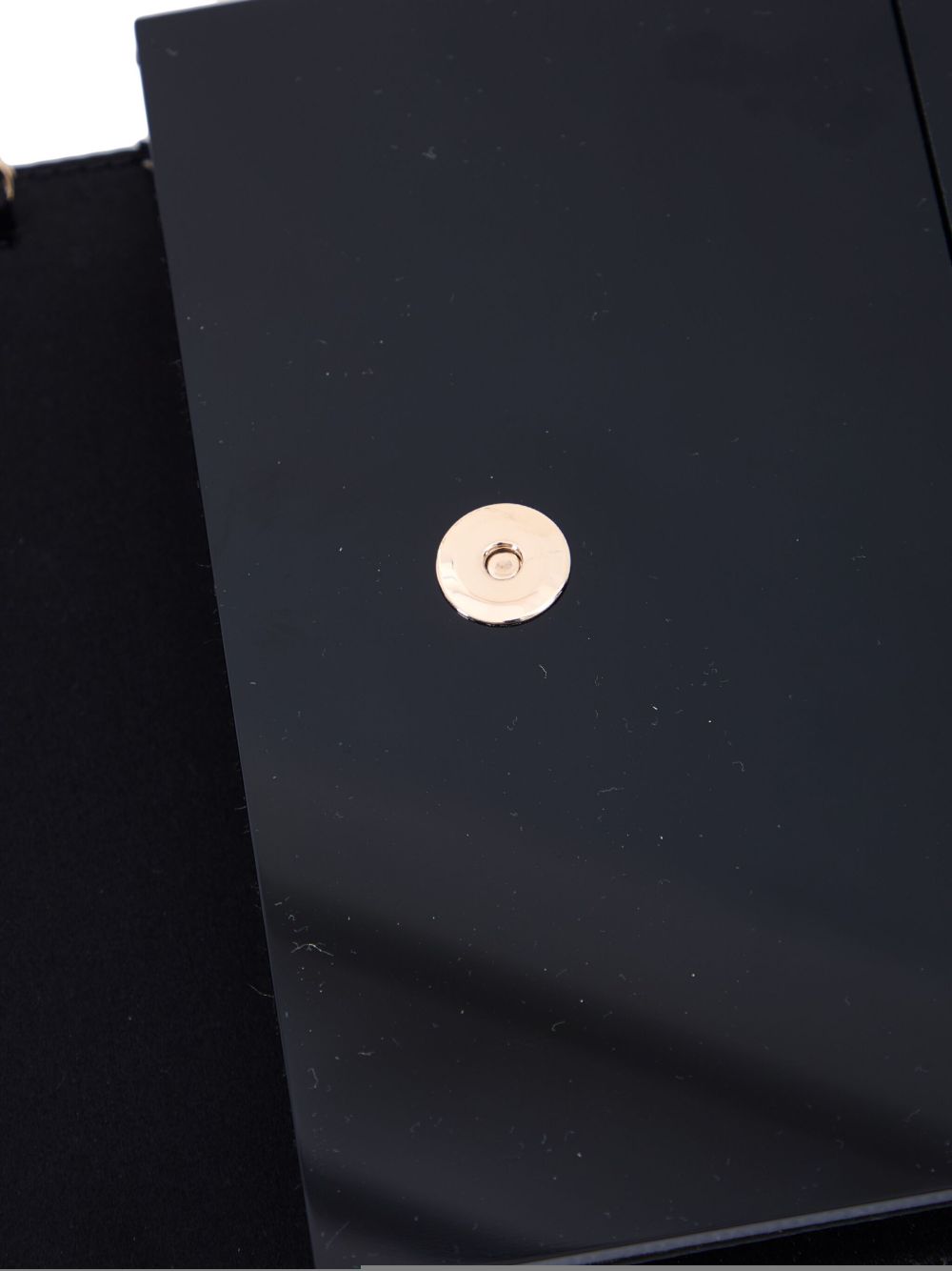 Borsa clutch 'Candy' di colore nero di Jimmy Choo. Modello con battente con bottone a pressione, taschino interno e tracolla con catena color oro.